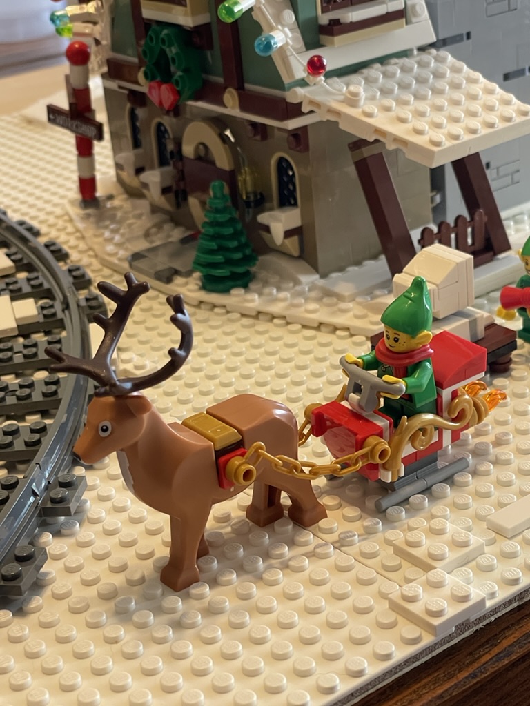 First, I need to buy 3 more base plates to finish the base of the village. Obviously, more minifigs will help improve the town, as would raising Santa and his sleigh up on clear casters so he is flying across the winter village. I also would love to get 4 more reindeer to complete the set, but they are currently out of stock on the US LEGO website.