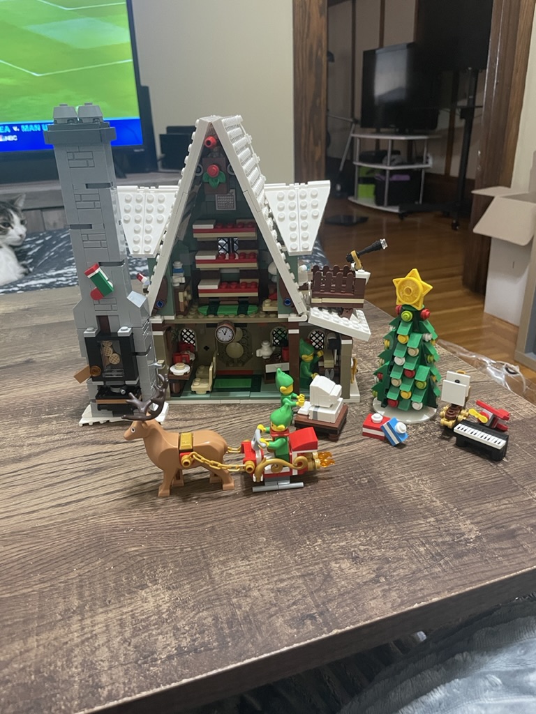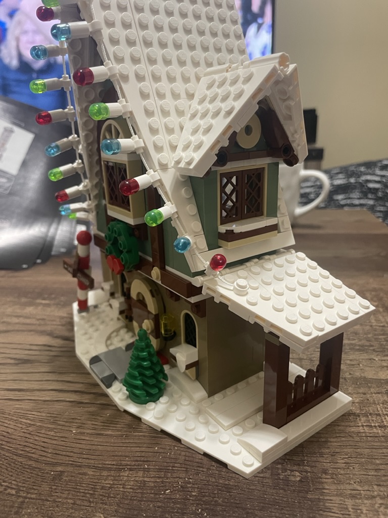 While searching the LEGO.com website in September of 2022, I decided to get some Christmas-themed sets to use as attractive festive decorations. I noticed that this set was retiring soon, so I snapped it up. I was attracted to the lights at the front of the house, the cute reindeer carriage, and the elves!