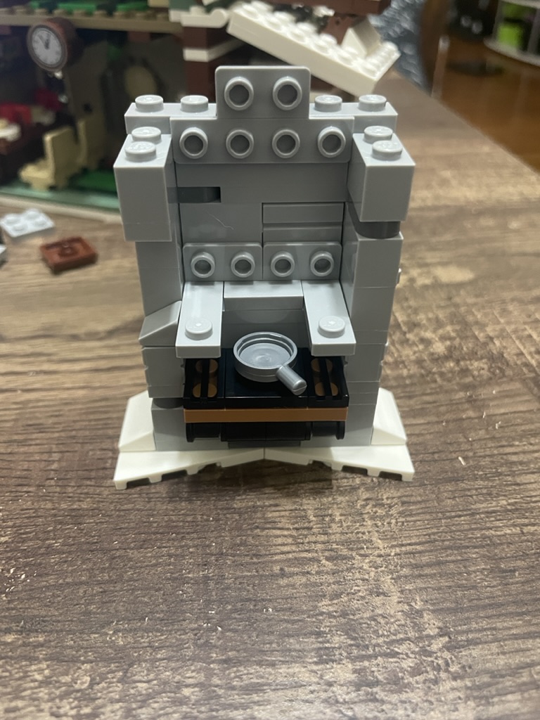 The completed build looks stunning. The chimney can pivot to sit at 90 degrees against the kitchen area. I love how the set looks with all the peripheral elements made at the start of the build.