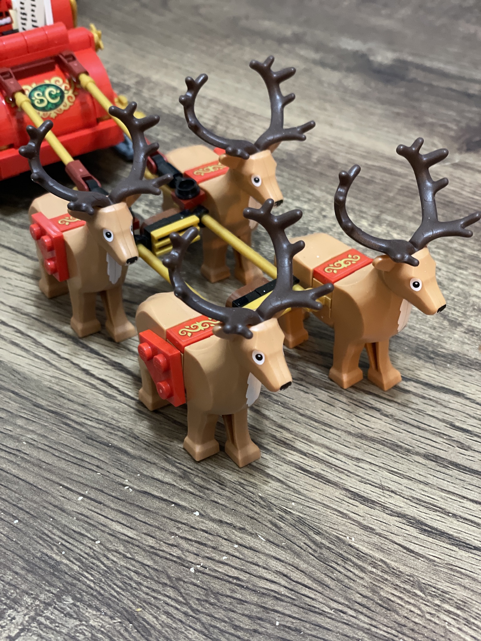 Santa’s sleigh looks incredible on a shelf; without close inspection, it doesn’t look like Lego, thanks to the tiled exterior. I suspect this makes the set appeal to a broader audience. The molded reindeer are the showstoppers of the set.