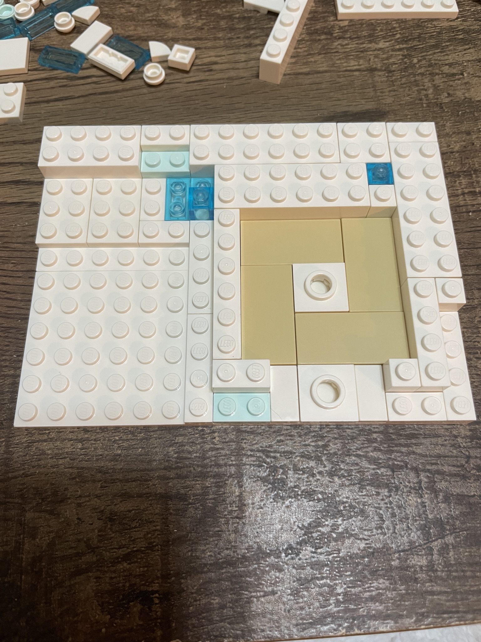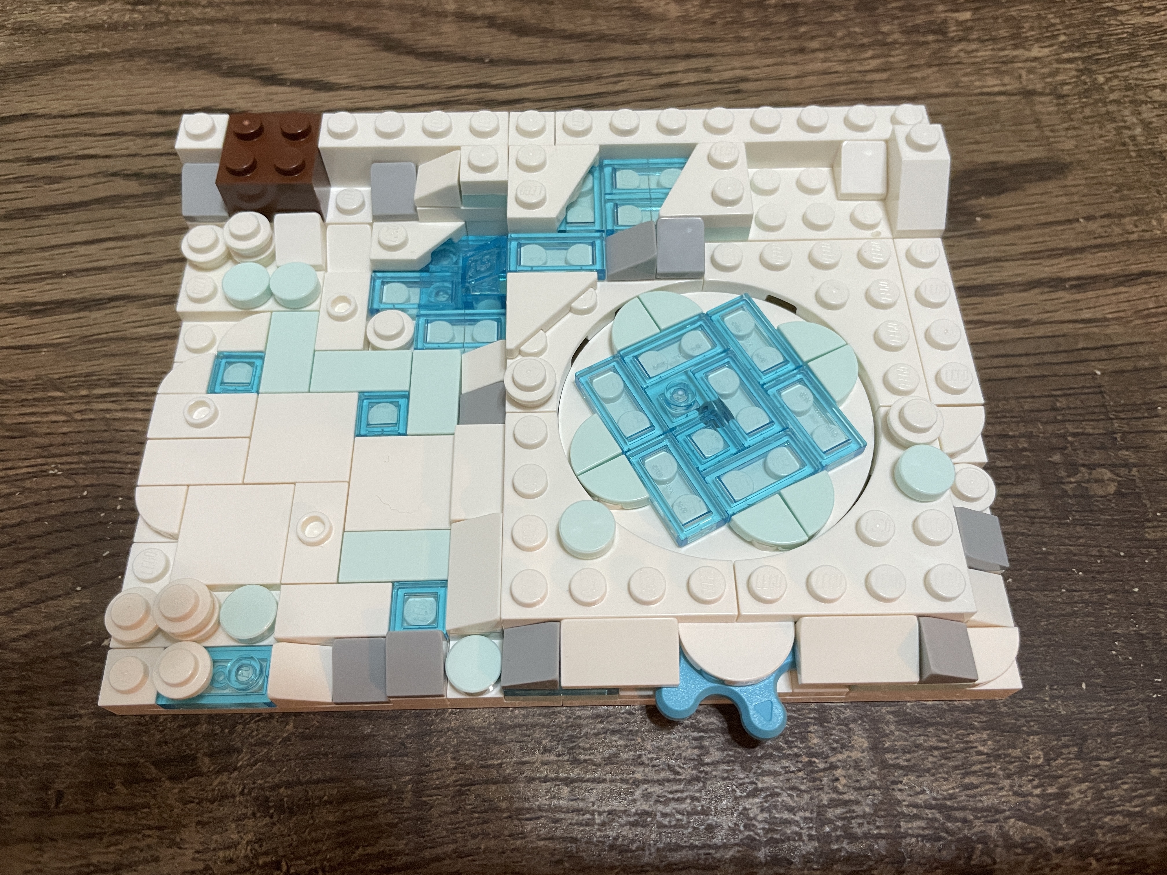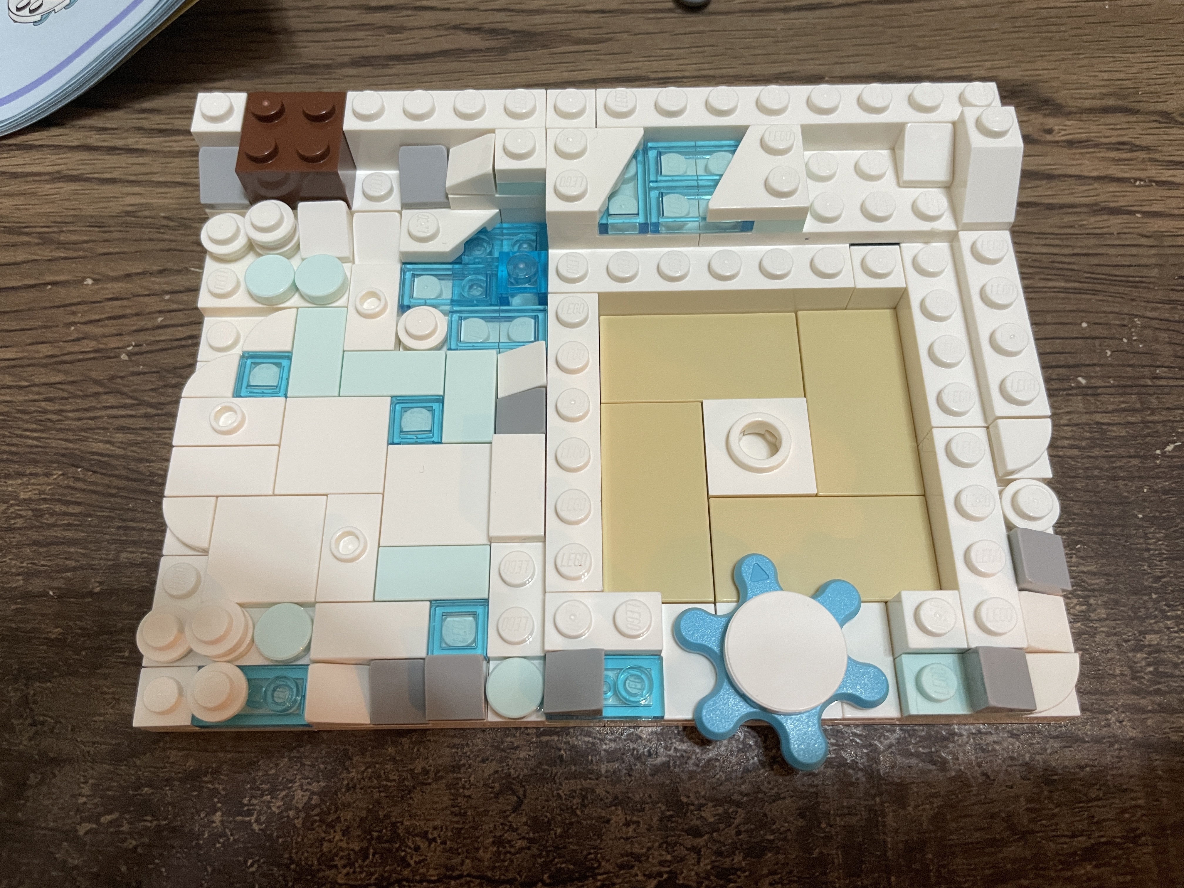 To complete stage one, the base is finished, with the rotating ice rink the focus. It’s enclosed with white plates, so none of the tan tiles are visible.