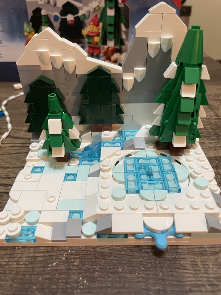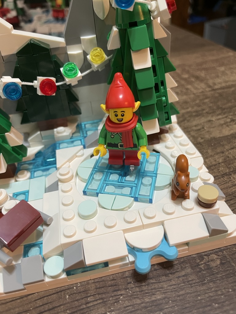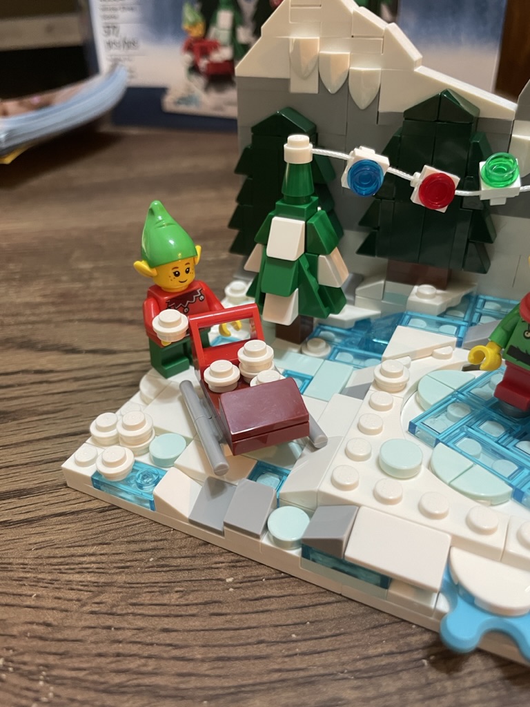While the build wasn’t technically challenging (and you don’t want it to be for a GWP), it is well-designed to give a good build experience for all ages and abilities. Adding the gears to allow the elf to spin on the ice is a marvelous quirk that elevates the build.