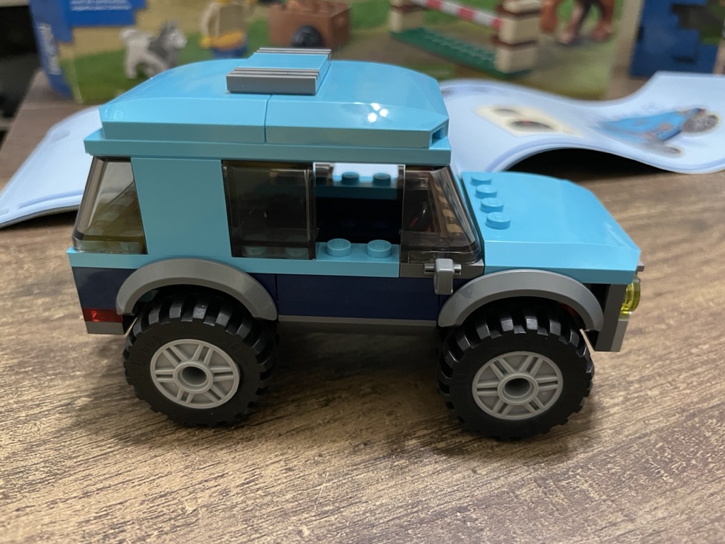 The set comes with two instruction books, so two people can build this set together. The first 40-page instruction manual covers stage one – the 4×4 vehicle, driver minifigure, and some accessories. The second 52-page booklet outlines the transporter, jump, rider, and horse.