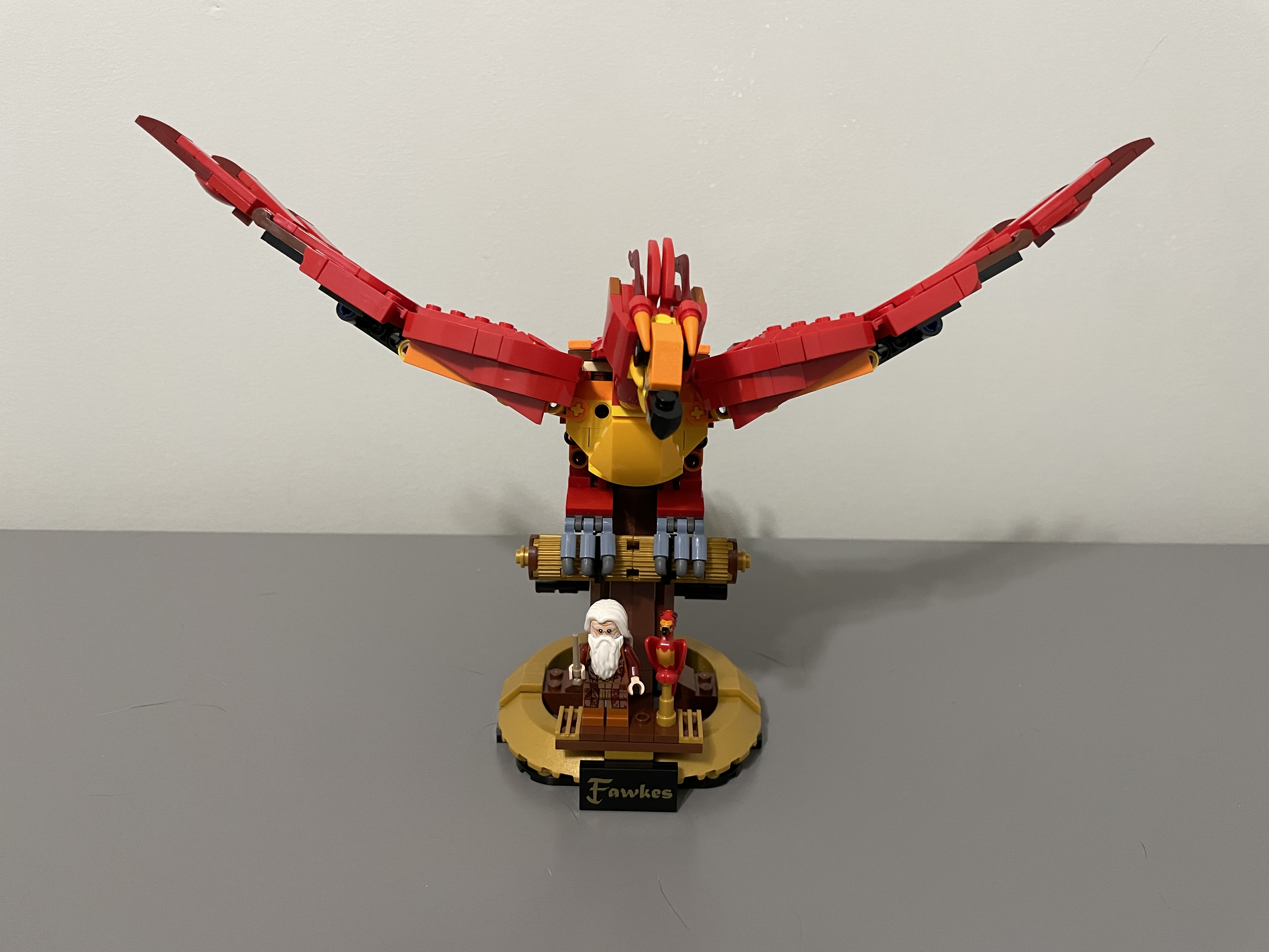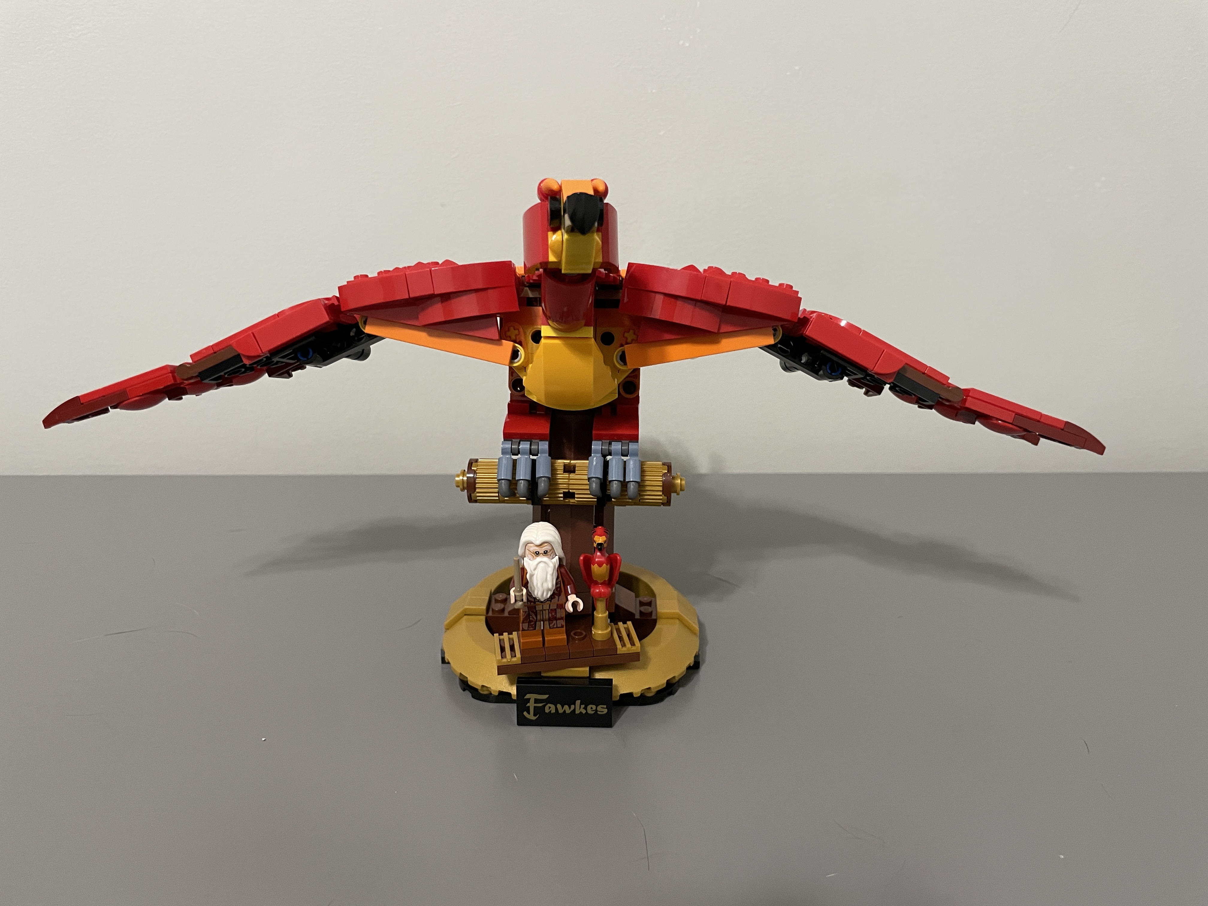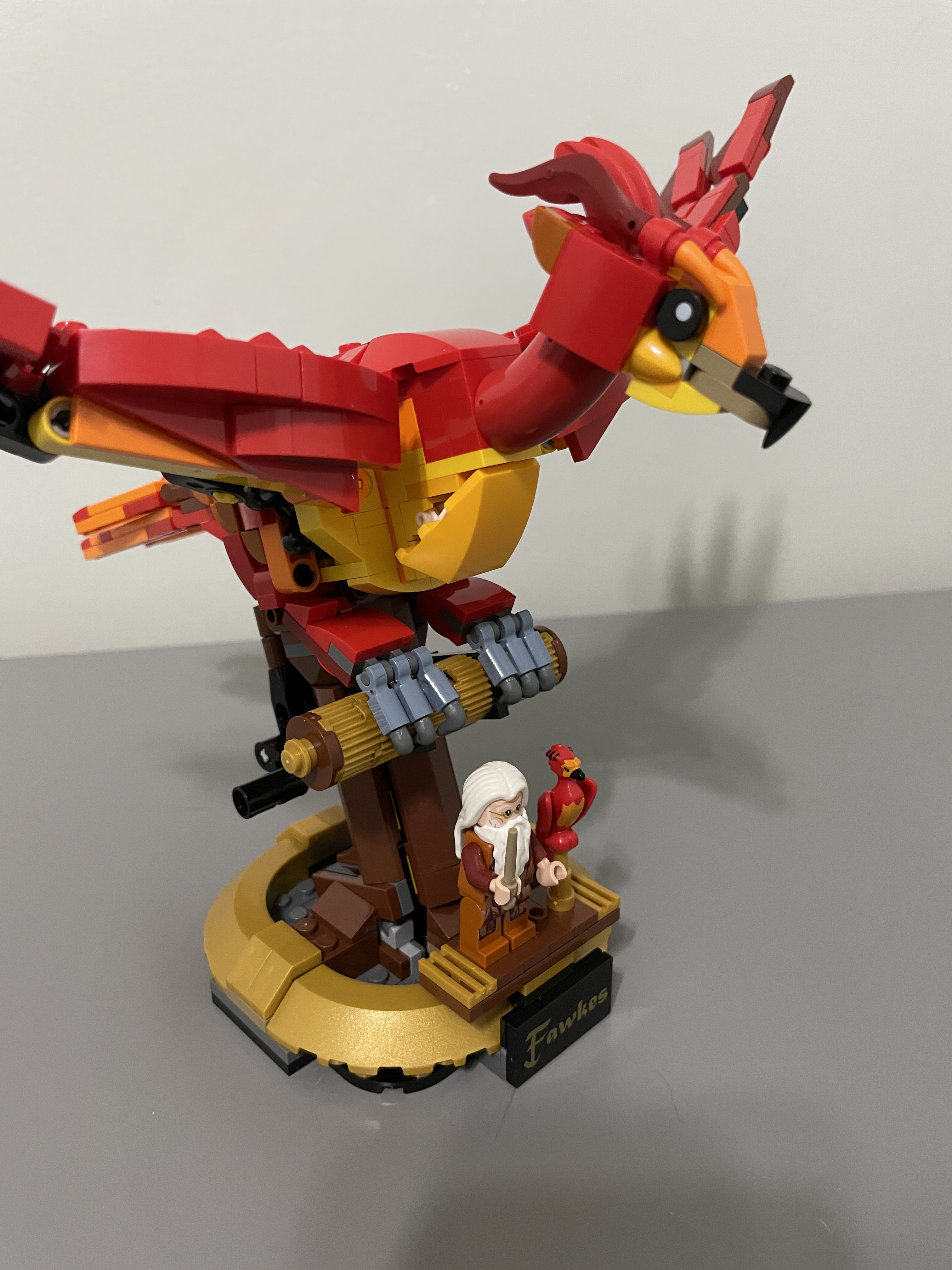 As soon as I committed to having a Lego “flying objects” section in my home, I eagerly anticipated the arrival of Fawkes. I suspected he would stand out due to his color scheme, so this was a good way to start my flying objects collection.