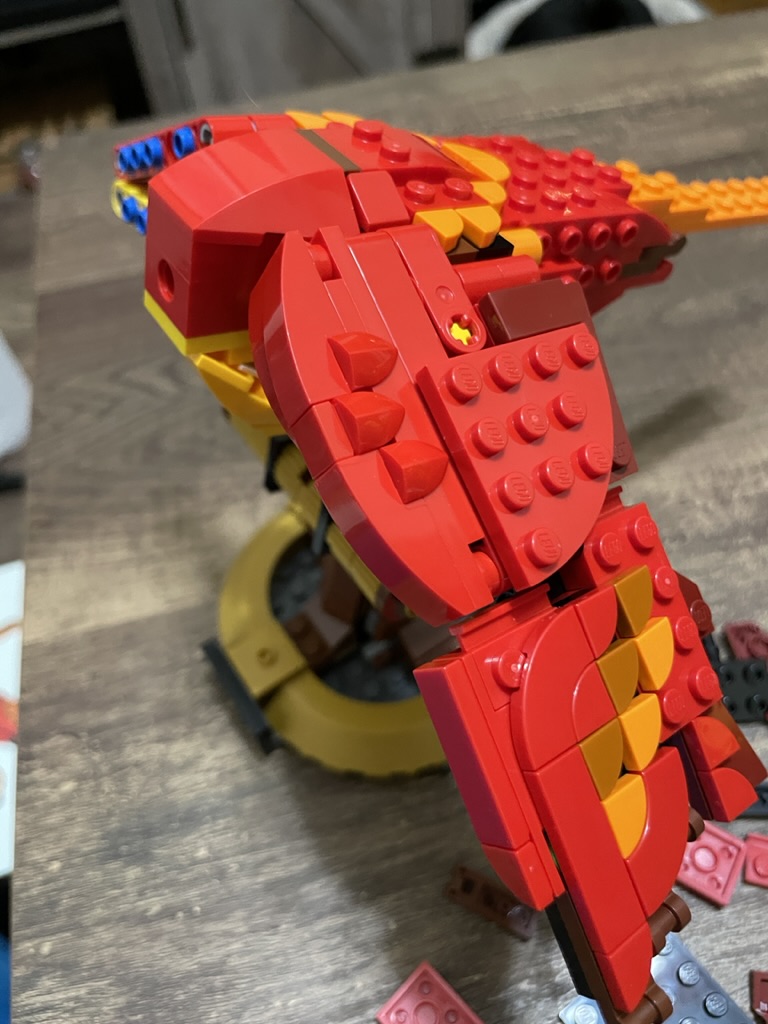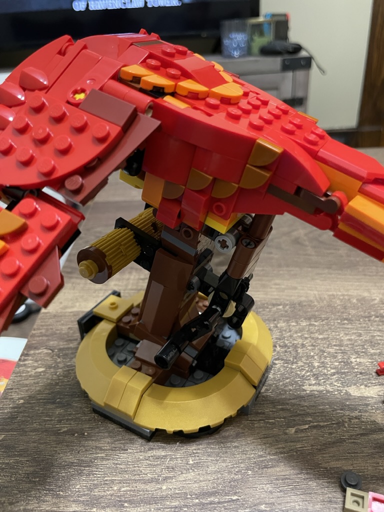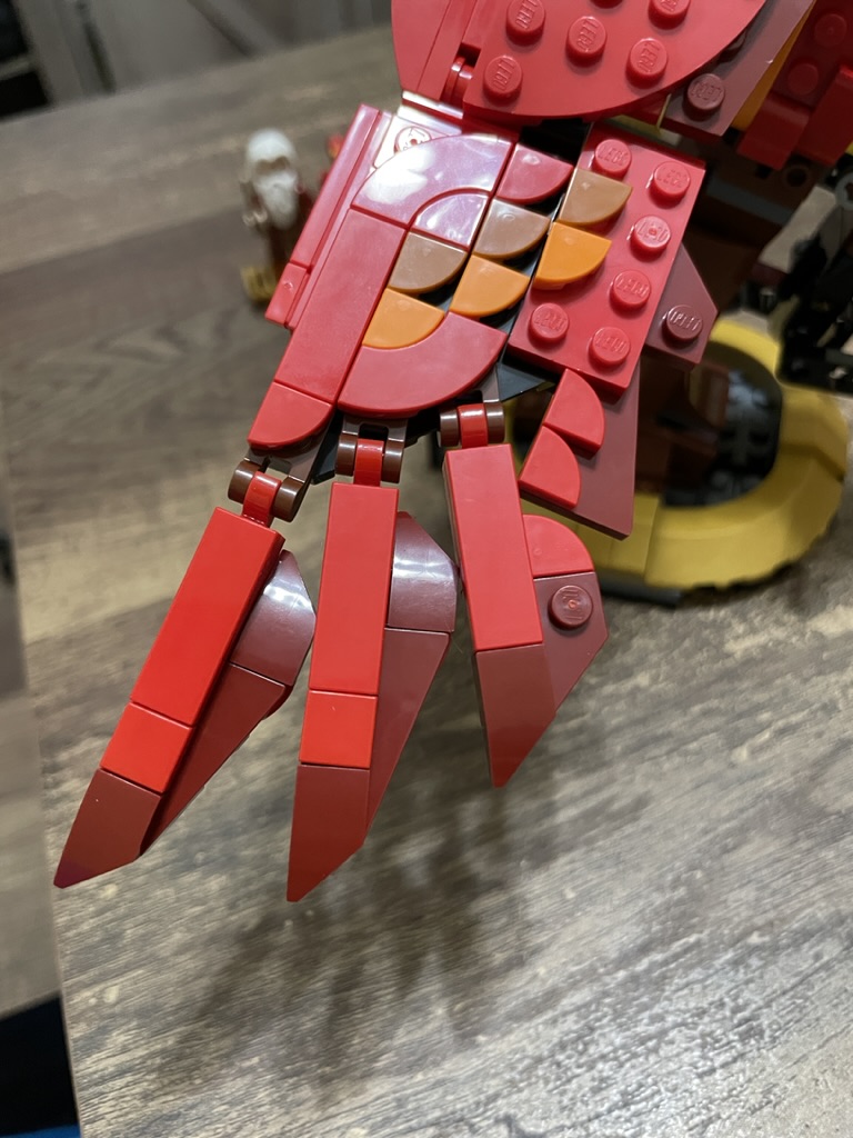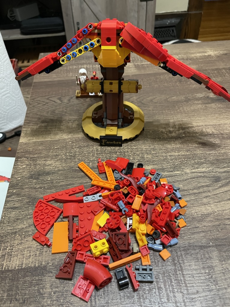 As soon as I committed to having a Lego “flying objects” section in my home, I eagerly anticipated the arrival of Fawkes. I suspected he would stand out due to his color scheme, so this was a good way to start my flying objects collection.