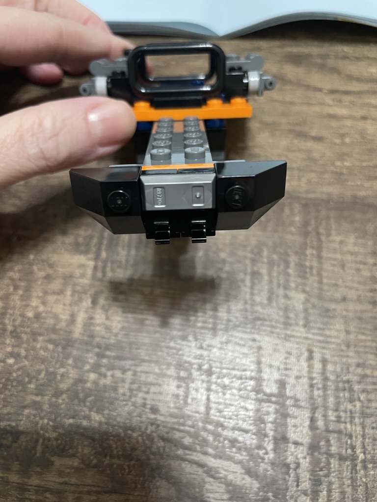 The cargo area connects to the first part of the build before a couple of clips and a second safety bar are attached.