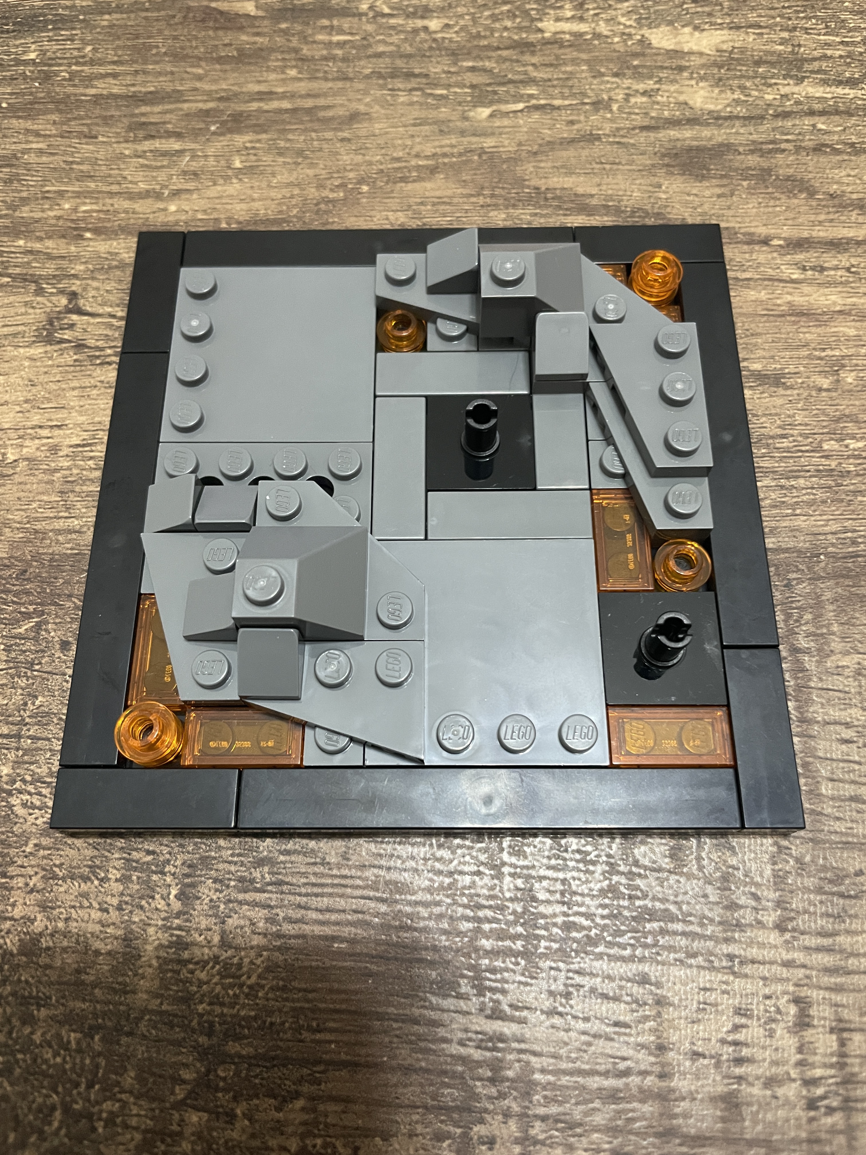 A combination of slopes and triangular plates creates a fun design to add texture and height to the base. Overall this makes the platform exciting and not a flat piece plate.
