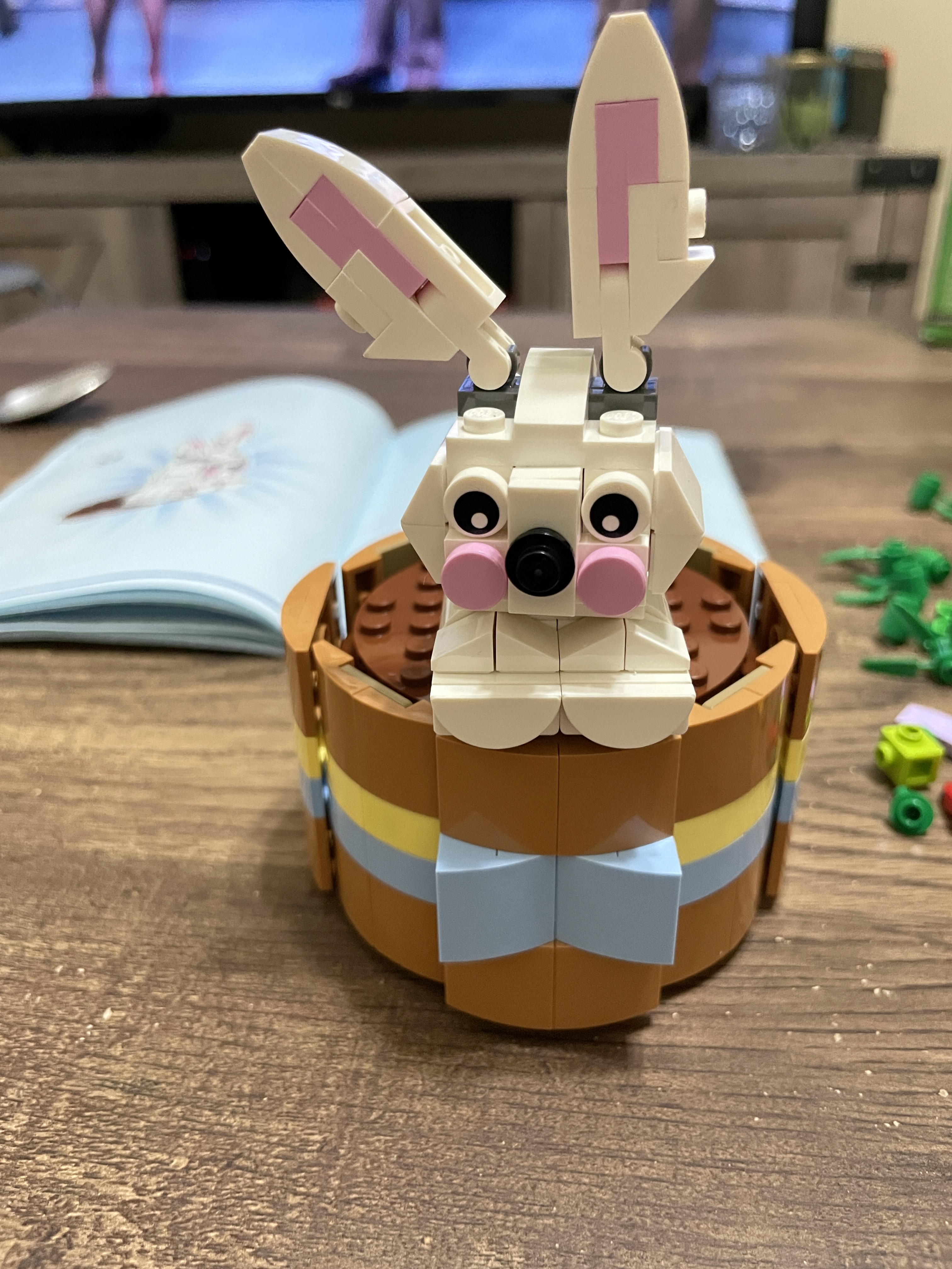 This Easter Basket set displays perfectly. The bunny is adorable and not at all slightly off-putting or even verging on demonic, unlike some other rabbits Lego has released recently. Putting the tiny bunny in the flower pot is a nice differentiator from the Year of the Rabbit build we got as a GWP earlier this year.