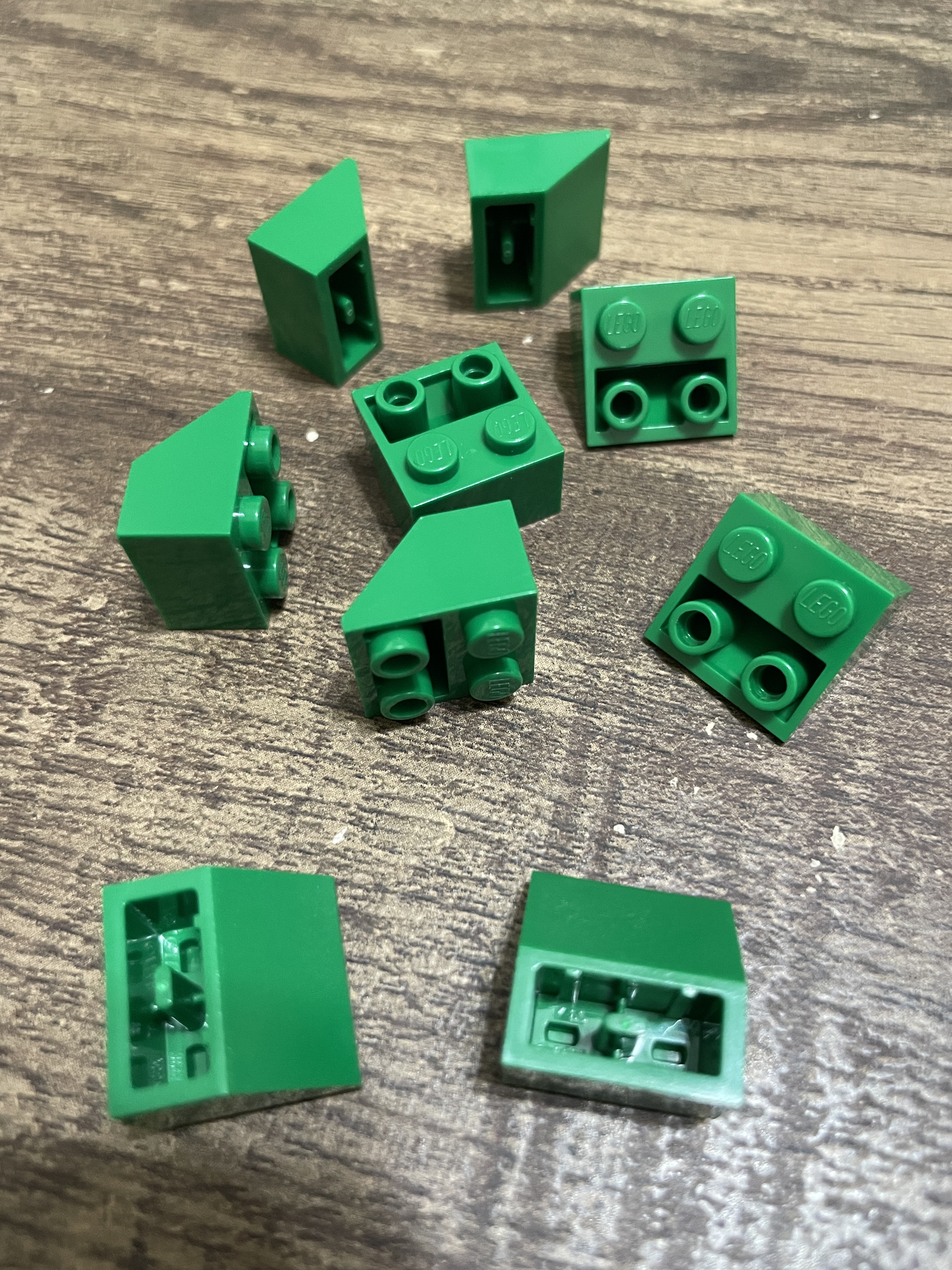 First, I need green elements for the campground. My biggest purchase was the 1×2 wedges, aka roof tiles; I picked up over 200 of these – perfect for texturing. They filled about a quarter of my cup! Likewise, I got the plates with bow for the same reason. I selected a few other elements in green that would be useful for texturing and designing green spaces in my city. I couldn’t quite envision what the inverted slopes and plates with slides would be for, so I only picked up a few of those. The dark green open studs are superb for adding detail to flowers and other flora around the city.