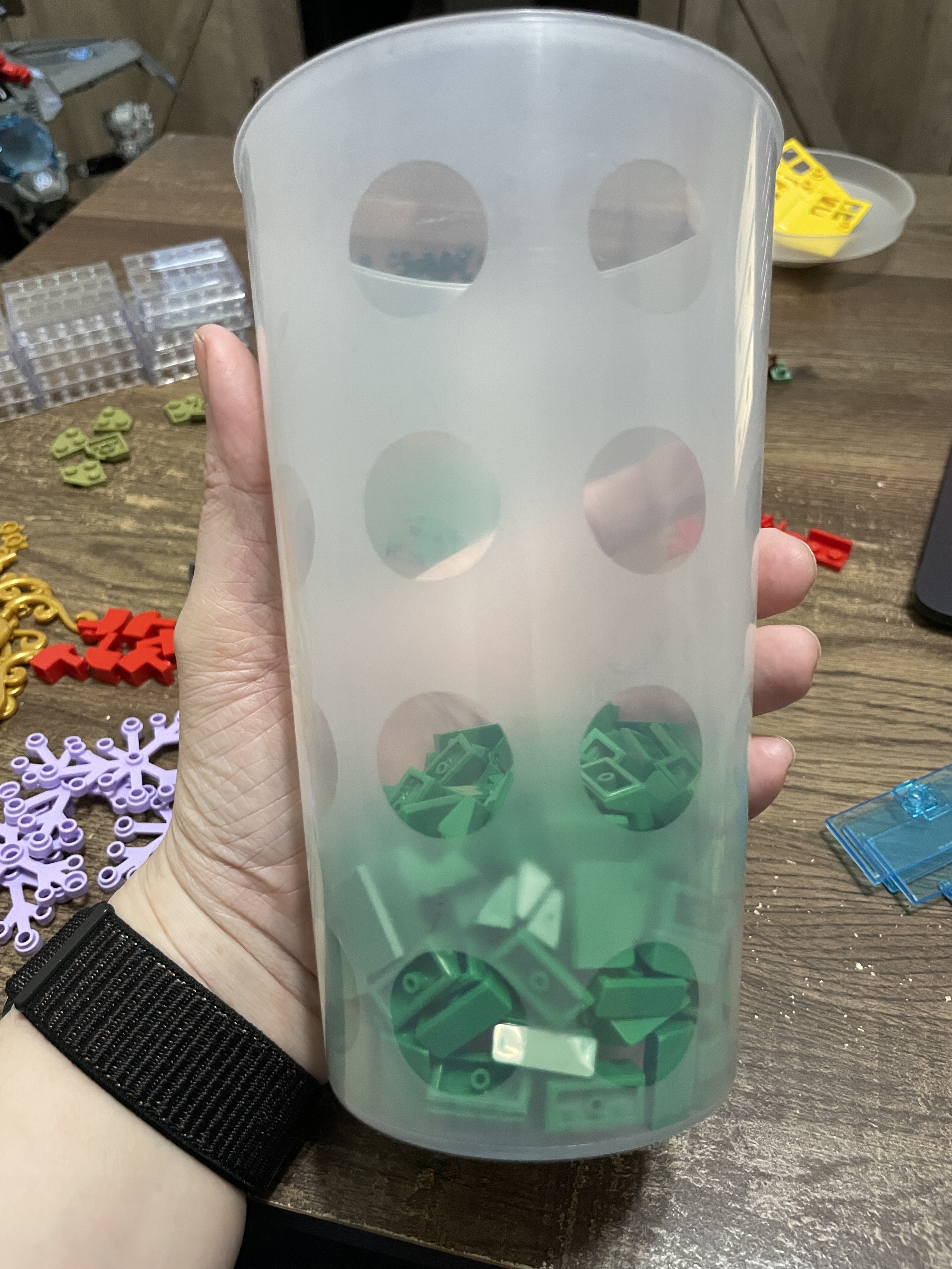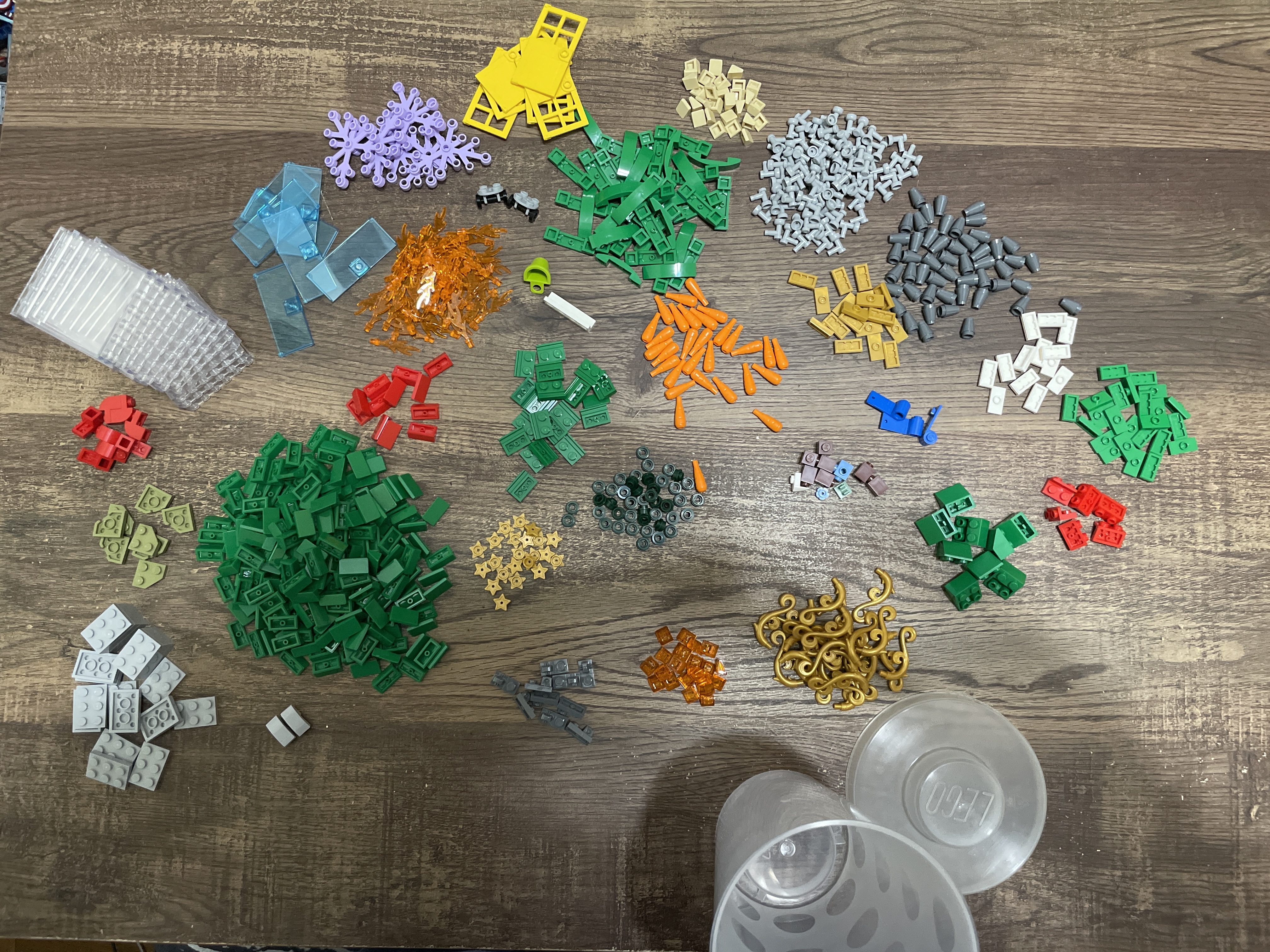 I purchased one large cup I strategically packed to get the most pieces possible. Once poured out, it creates a large pile of parts. Time to sort and count everything!