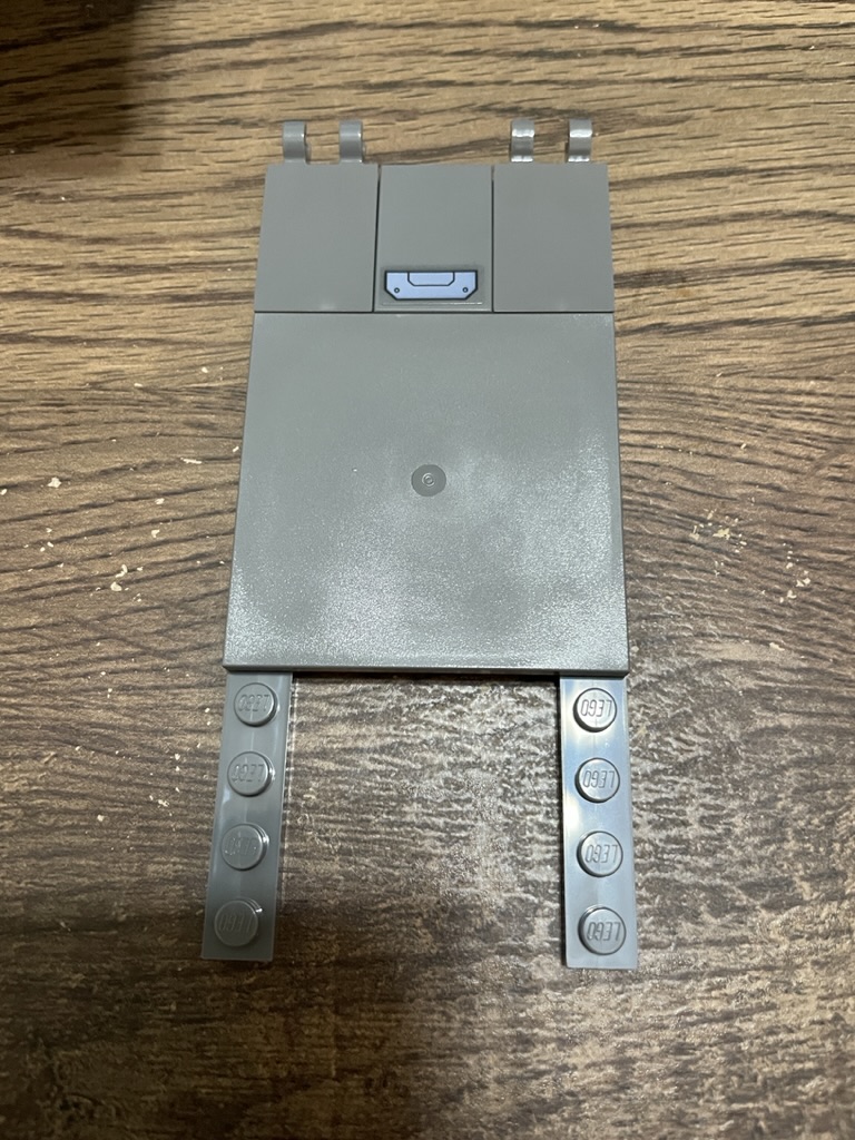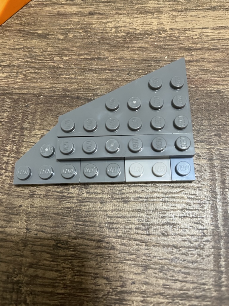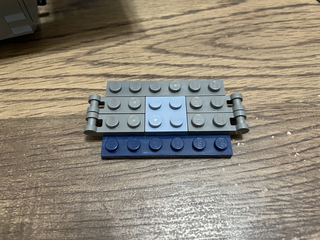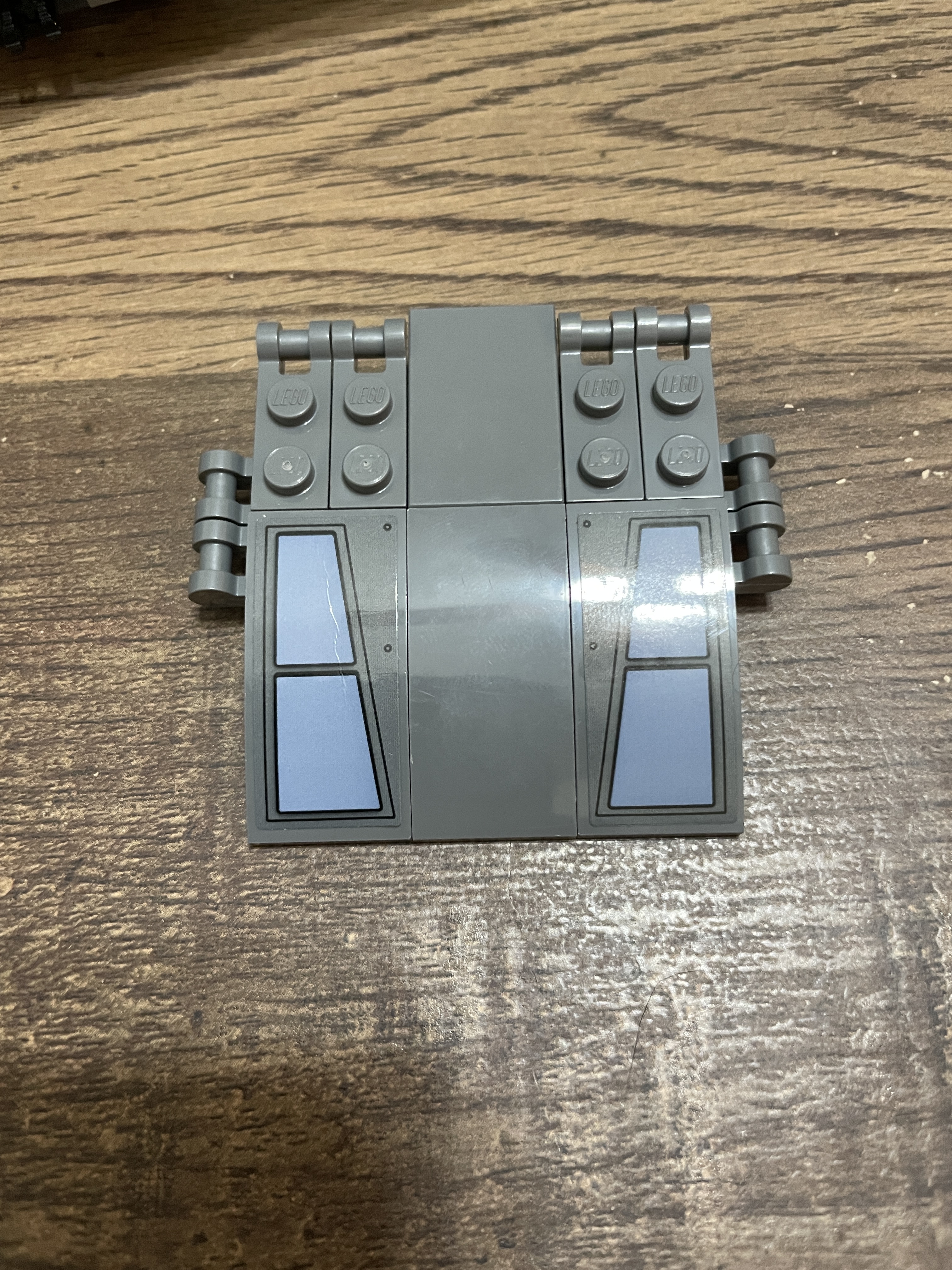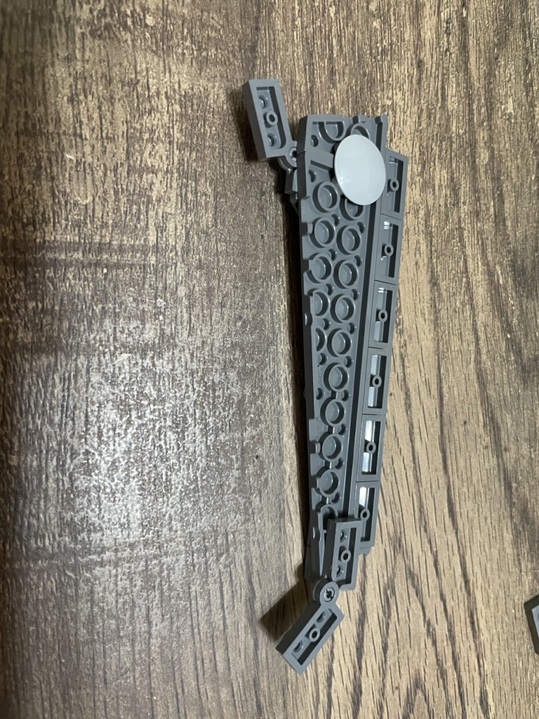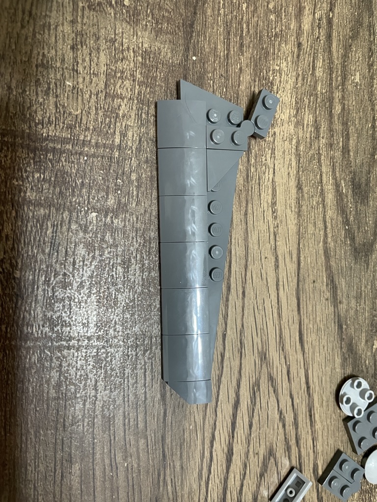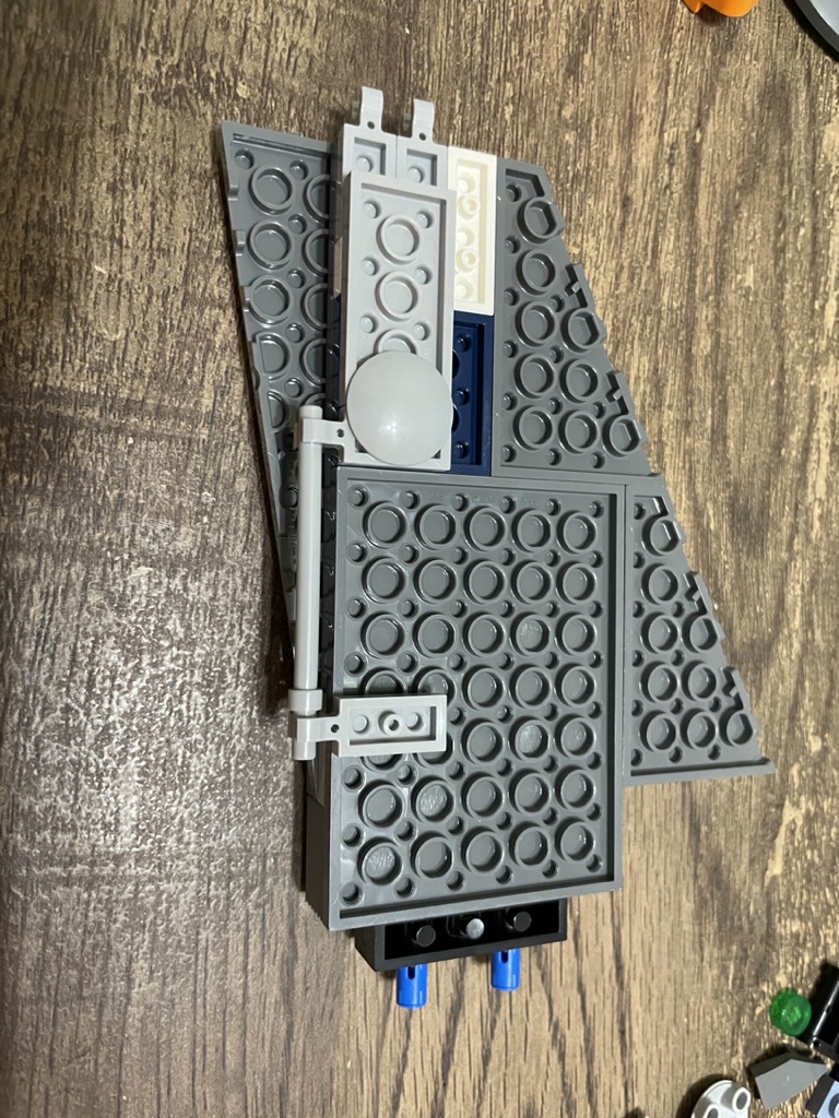 The wing design has three sections, and the back is a straightforward build of triangular plates covered in bow tiles. There are two hinges – one end on top, the other on the bottom. These hinges connect this section to the fuselage and the tip of the larger wing.