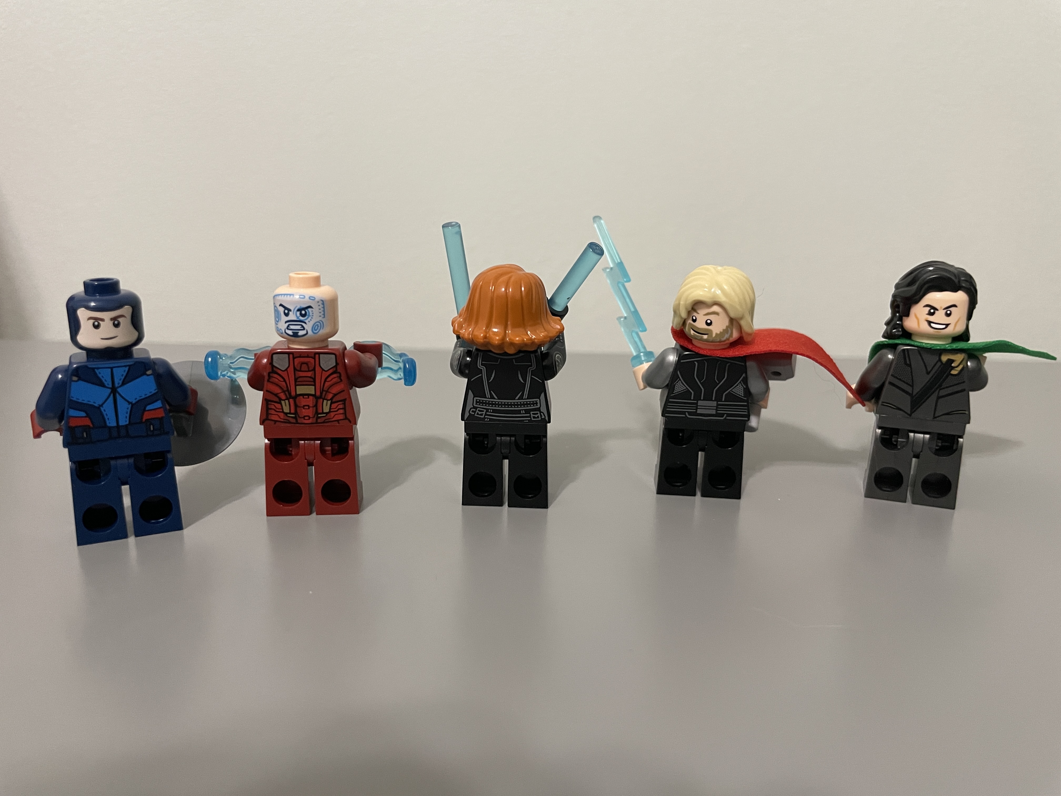 Blackwidow lacks a cape or a helmet, but she does have beautiful arm printing to give her minifigure some flair. Iron Man and Loki have leg printing, and everyone has exquisite torso detail. Captain America’s shield is the latest rendition, with black outlining, which looks more lifelike than previous versions.