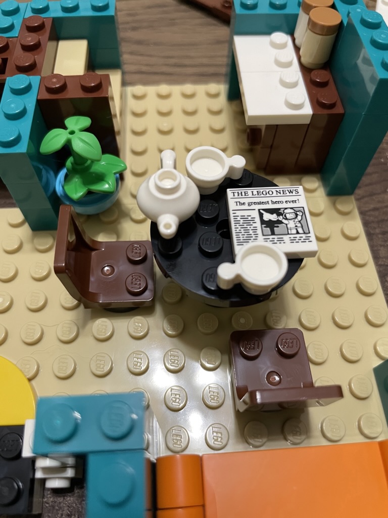 The final element of this half of the build is the tree – one of the set’s marquee features. A tree with a white trunk is not common, but the Japanese white birch could be the inspiration. I appreciate the tie-in with the store’s name and wonder which came first – the tree or the name. It is a fantastic build, complete with a bird in a nest, adding a lot to the set overall.