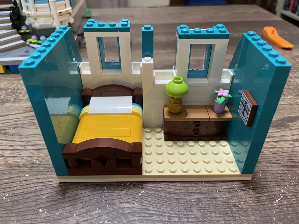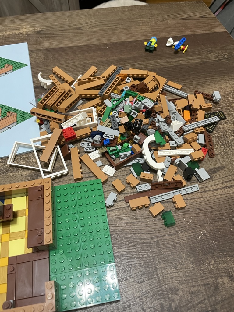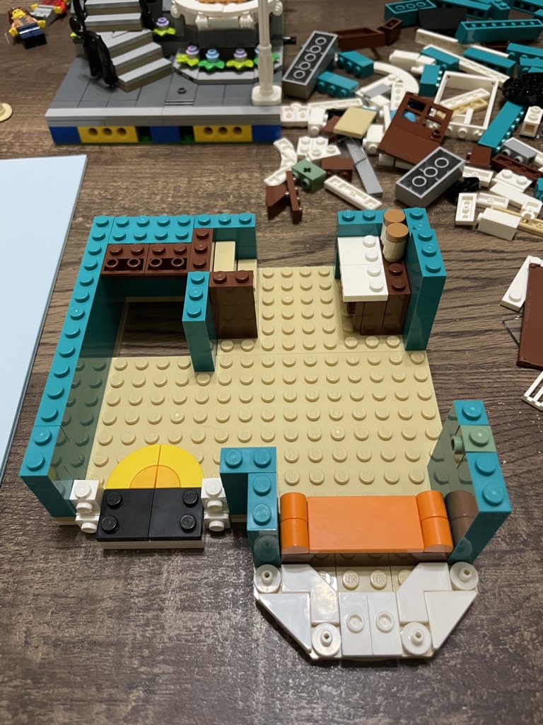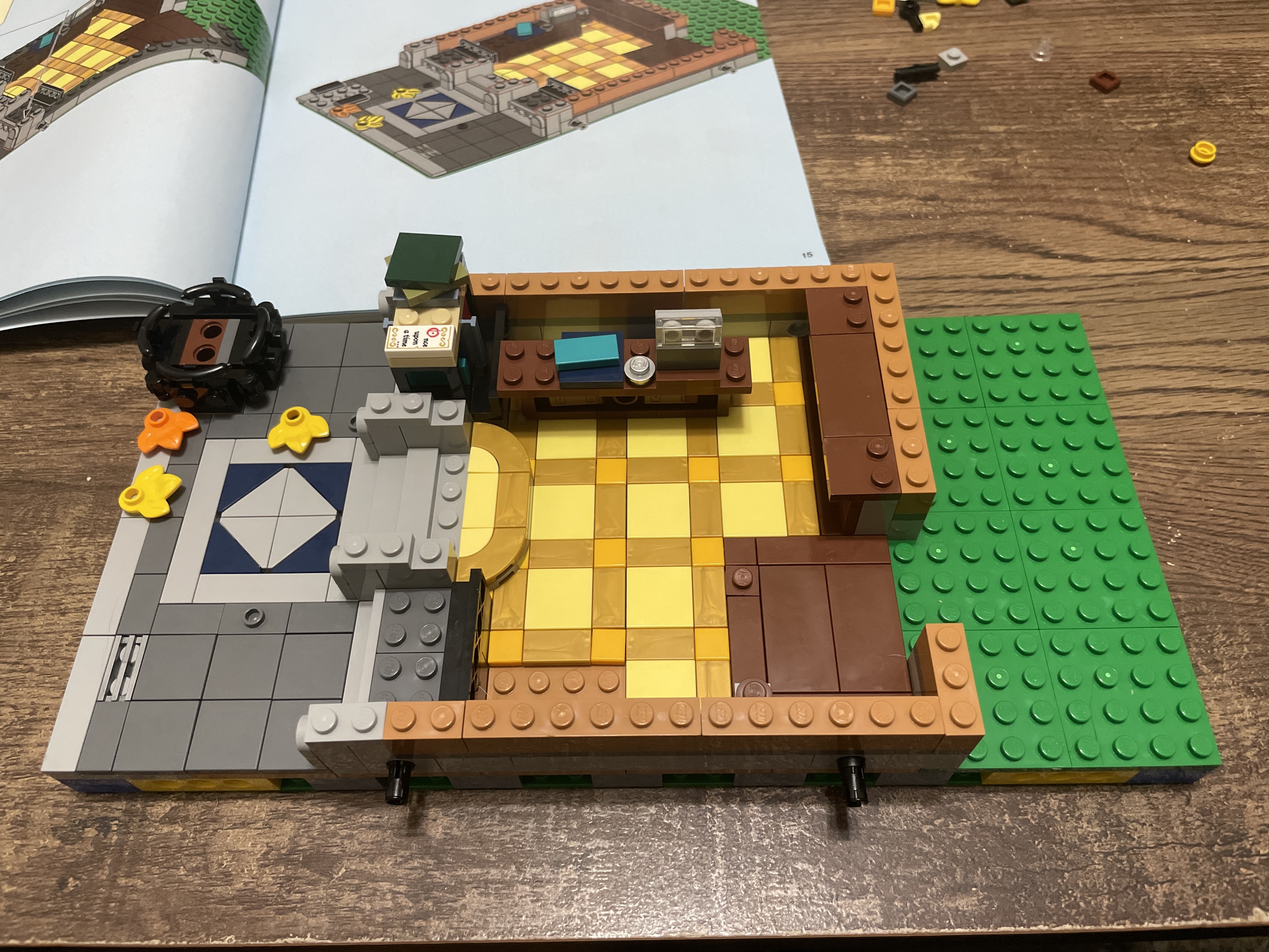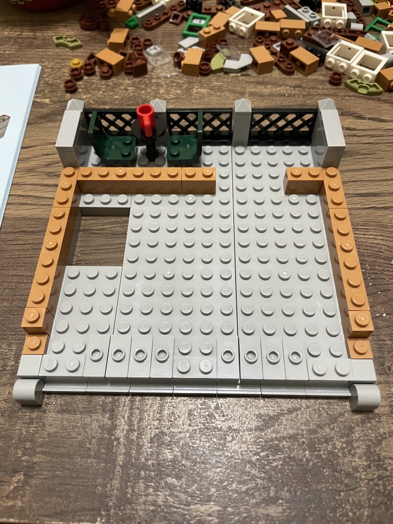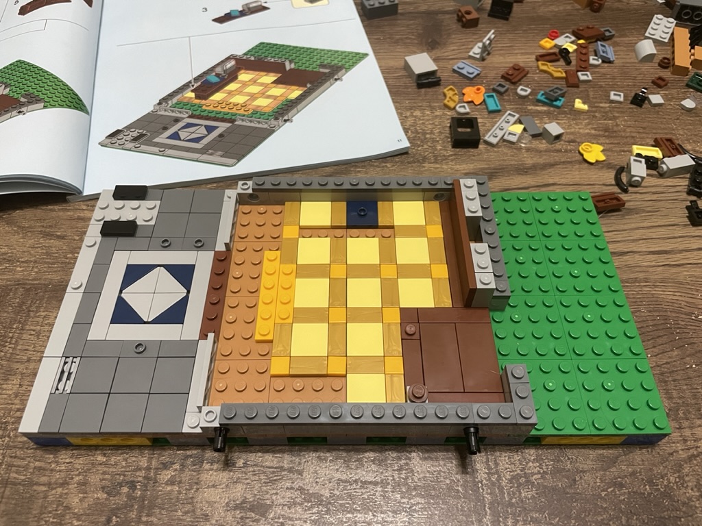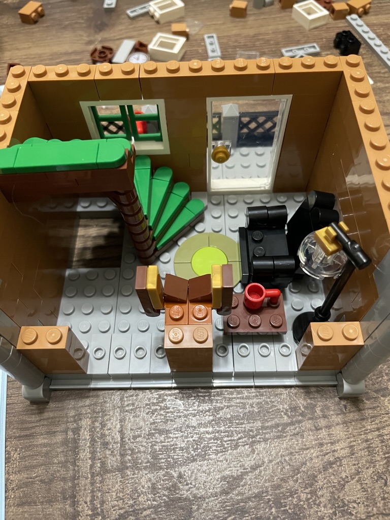 Starting the small house feels like a separate set. As with the bookstore, the first stage will build the base/foundation of the house before the next concludes the first story, with the final two stages having the parts of the top floor and roof.