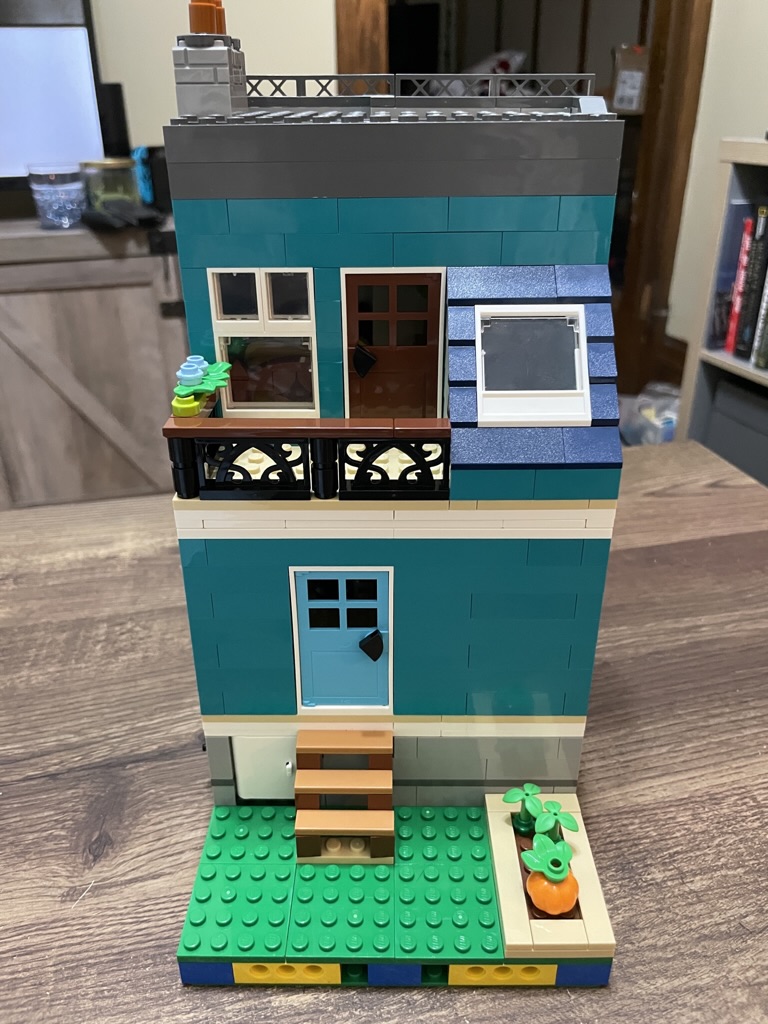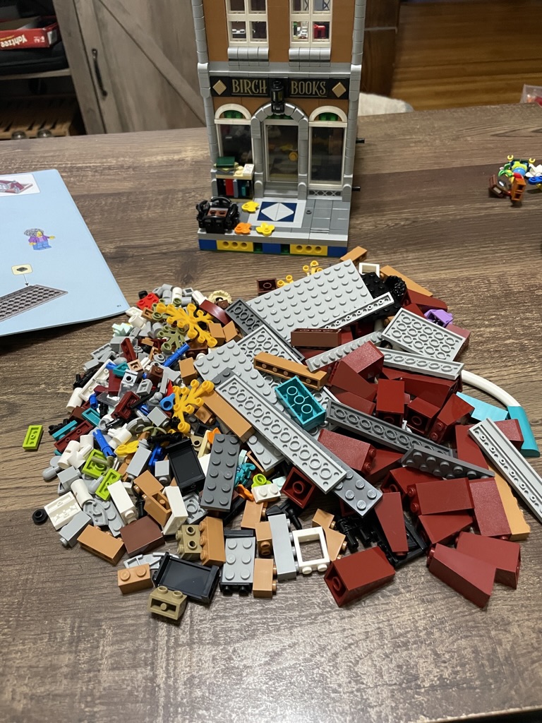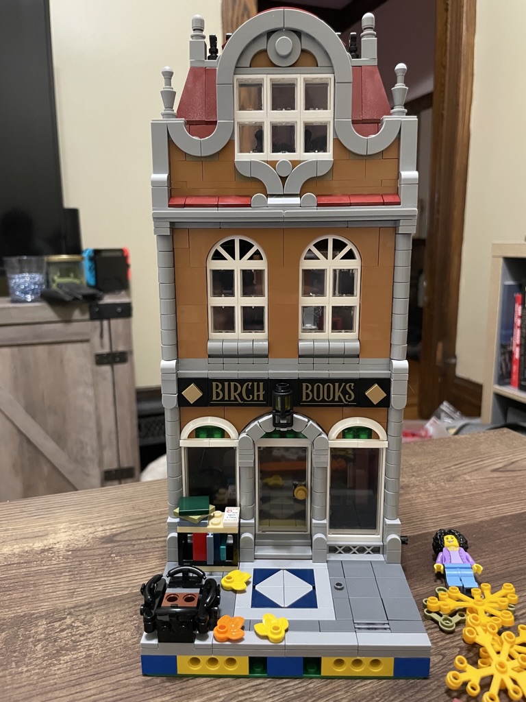 Before founding my city, I purchased this set as I knew I’d integrate all the modulars. Therefore, there was little debate about buying the bookshop. I loved the colors of this building and how it is a 2-in-1 build with a bookshop and an apartment, which is an attractive option for customization.