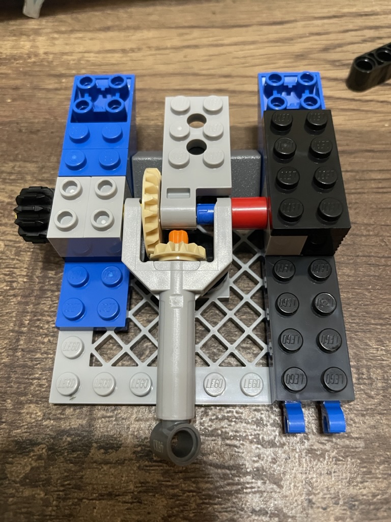 Stage three is the technical aspect of the build, creating a working crane with a fully extendable shaft and a hook that can be lowered with a crank. A unique grid 8×8 piece starts this section, which will hold all of the mechanics for the crane and allow for central rotation by having an axel through the center to connect to the vehicle below.
