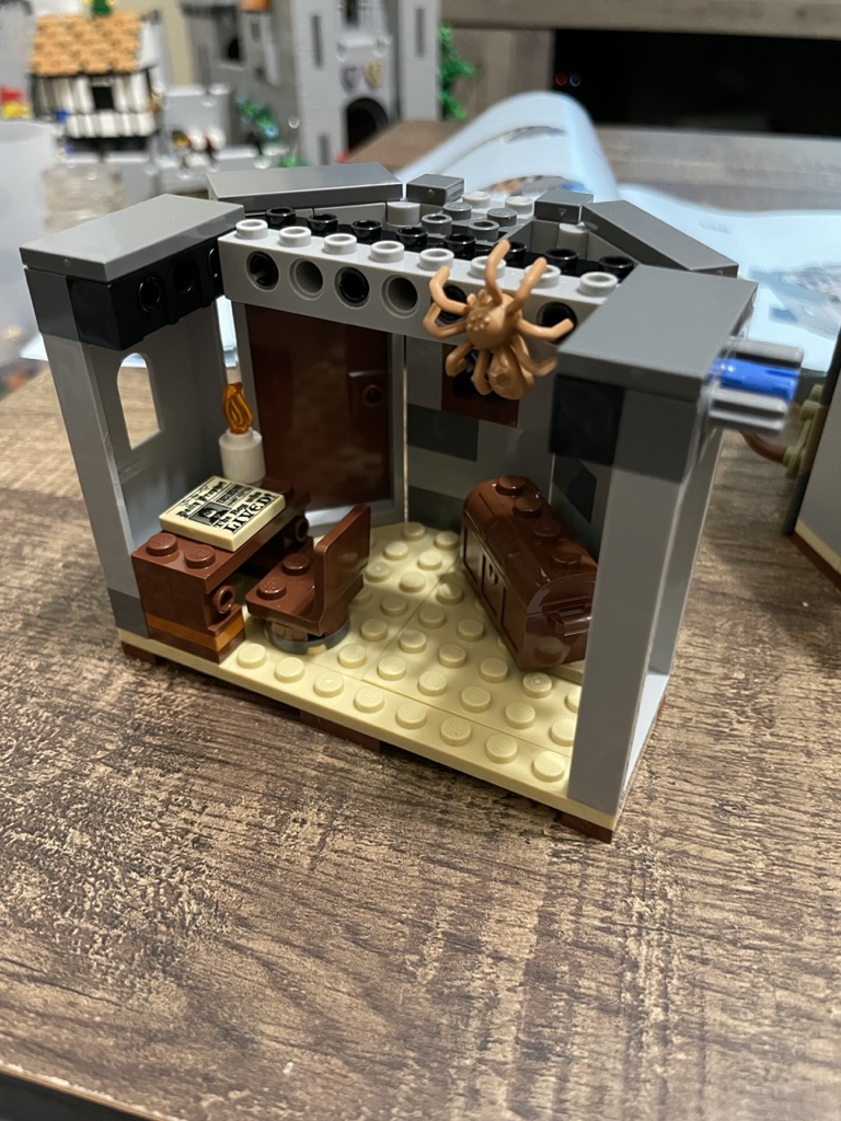 The roof’s constructed similarly, too – with technic bricks to generate to support beam. Onto that is a pretty horrifying spider! Seriously, it’s the size of the desk – it must be one of Aaragog’s children.