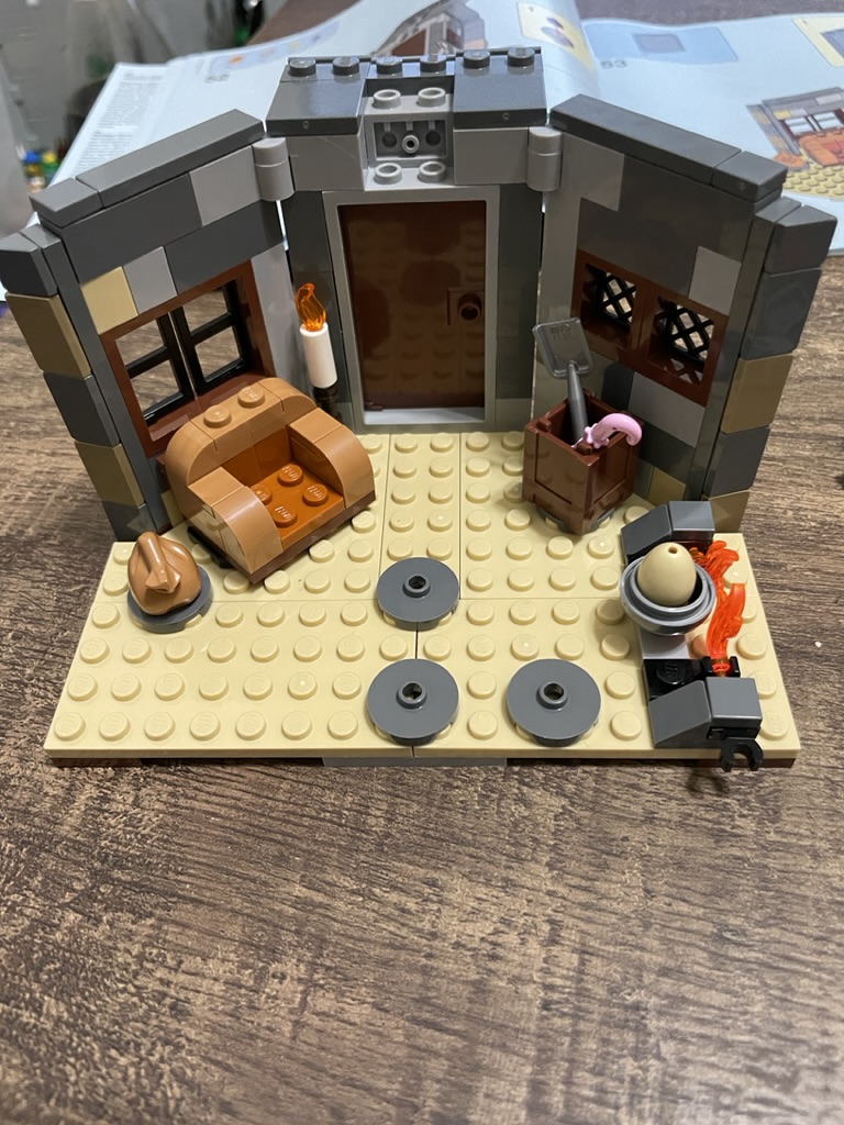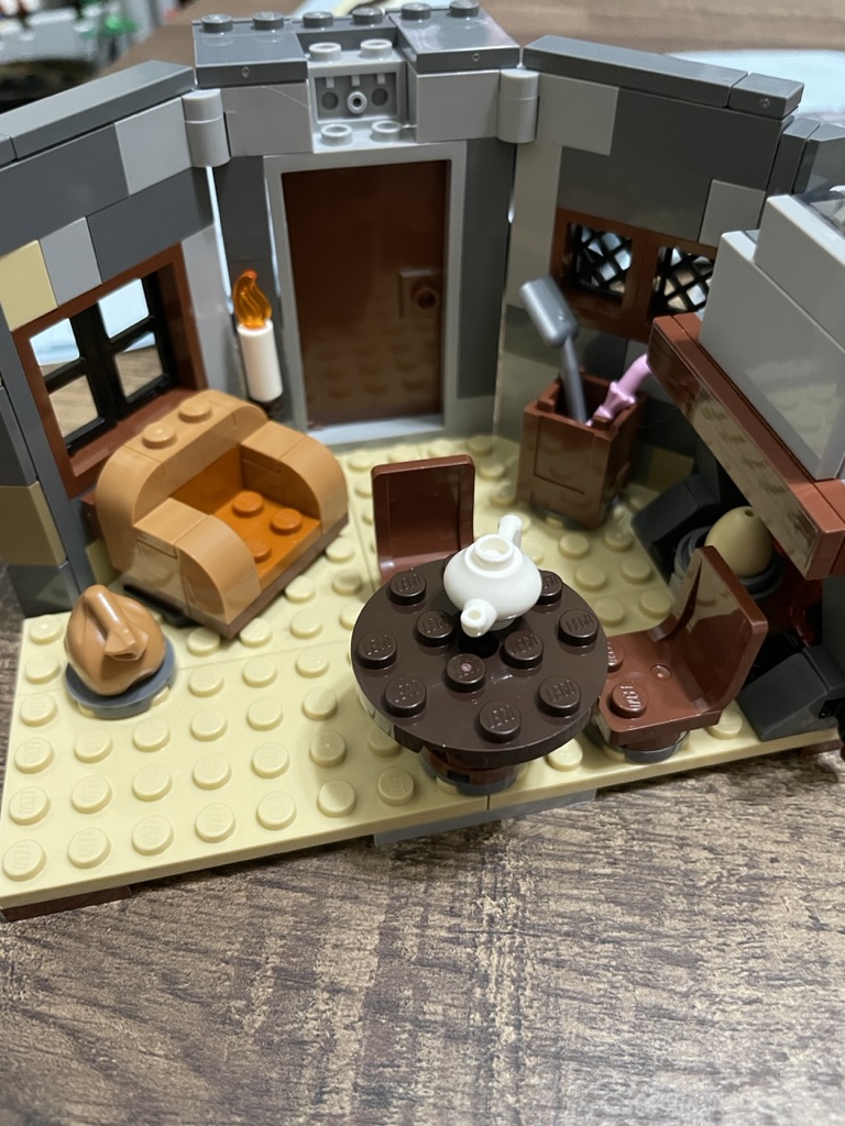 It is a shame that with an open back, the set does lack an element of completion. Many items in Hagrid’s hut have kitchen materials, but there is no way for Hagrid to cook. Yes, there is a fire, but there are no surfaces for him to prepare his food. I’m tempted to MOC complete the hut with a bathroom and a bed, though it is not unreasonable for Hagrid to use an outhouse.
