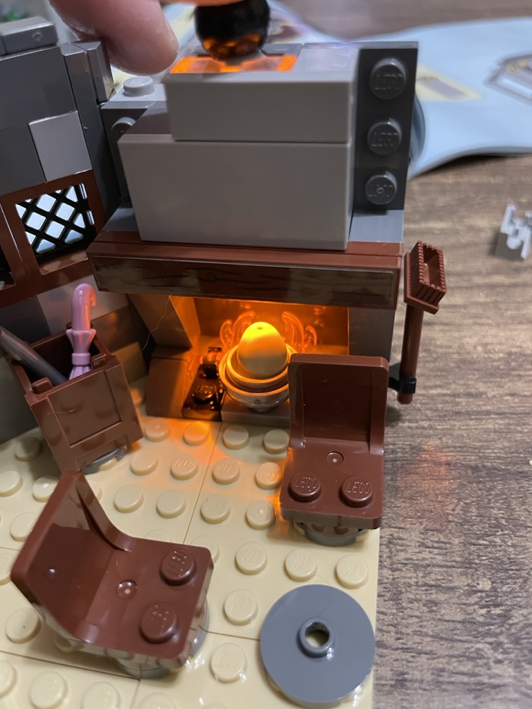 Another minor complaint is that the chimney can’t be pushed to activate the light brick. Instead, you have to lift the roof element to trigger it. As this is the main playable feature of the set, it is a little disappointing. It would have been easy to do, so I bring it up.
