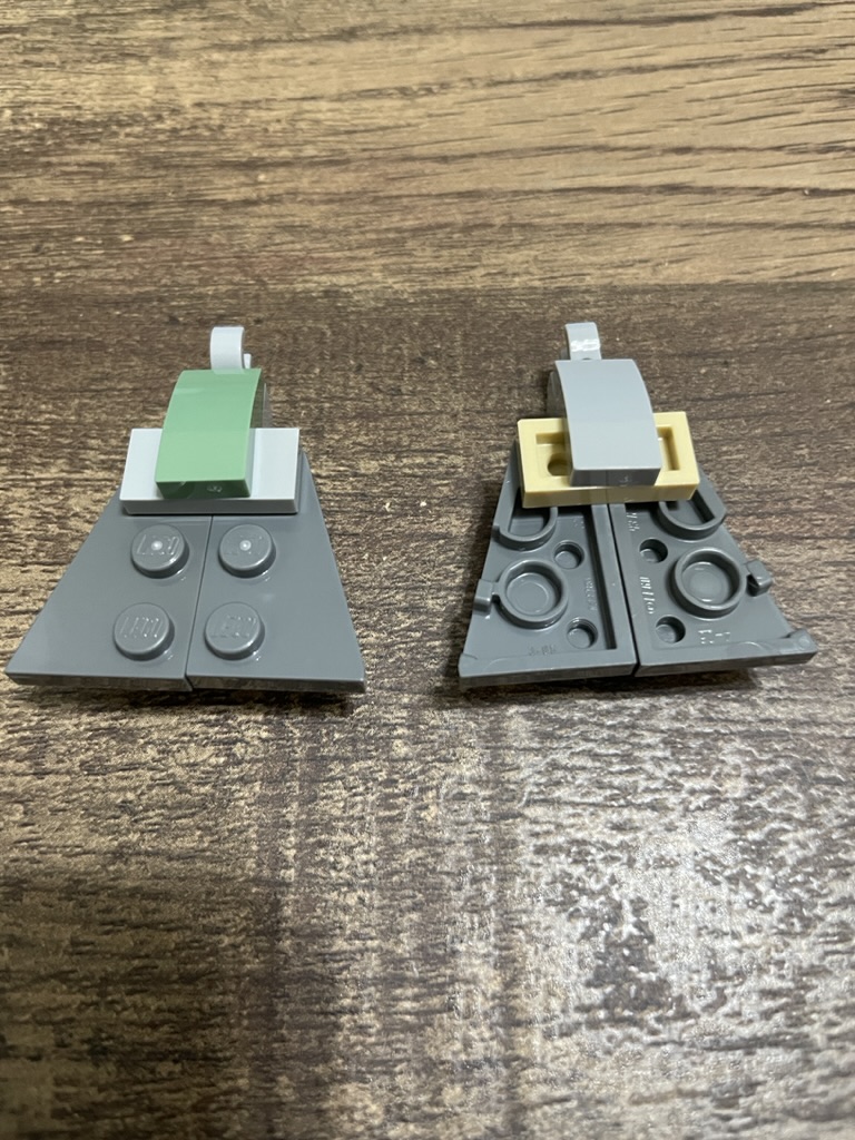 Five smaller panels make up the roof. Three have 2×3 dark grey tiles for decoration, and two have green sand slopes.