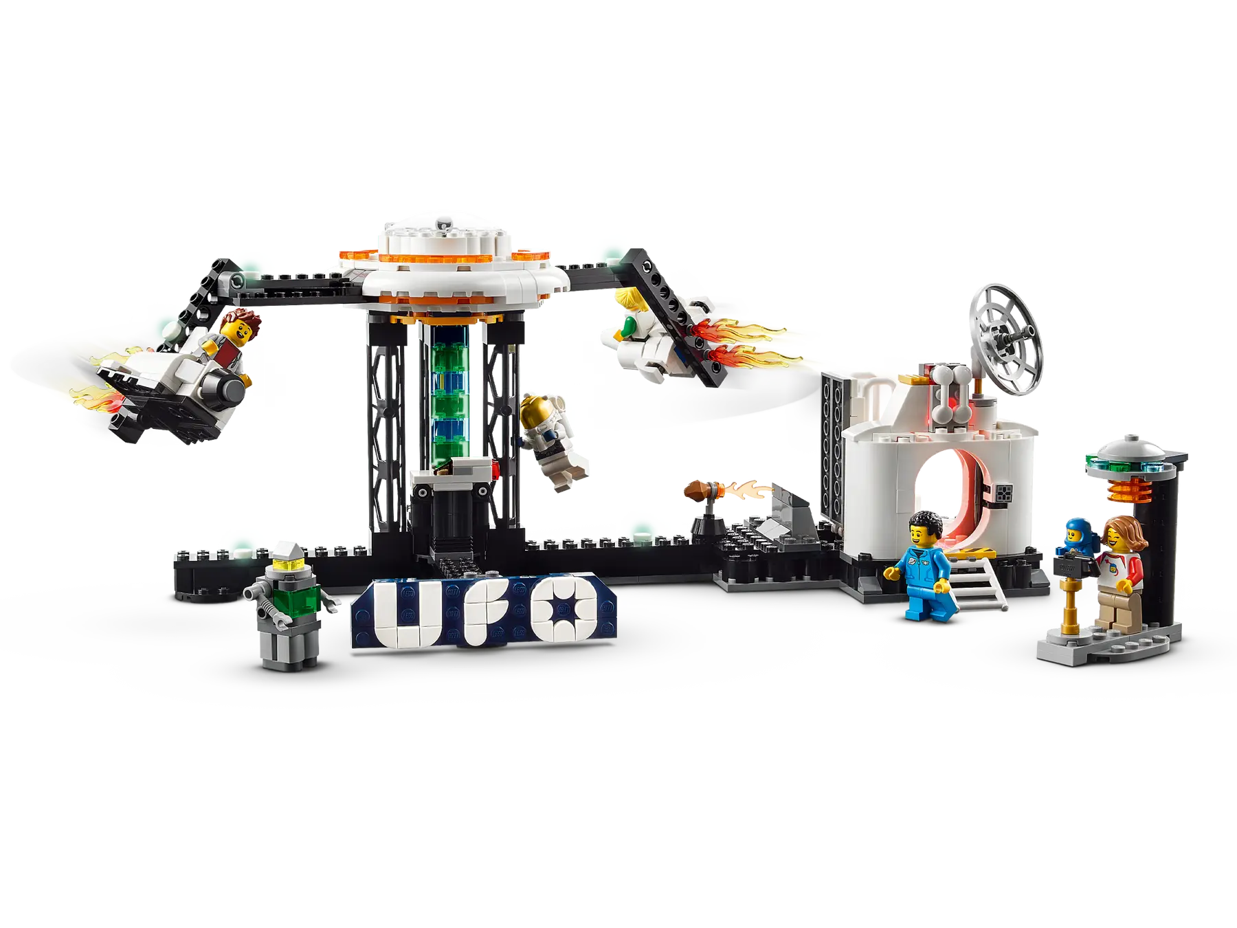 The final ride is swinging spaceships, and it looks like a great addition to the space area of the theme park. It does seem to miss a few pieces, so buying three sets to build each variant may leave some elements unused – which can help with a longer track or add to the inventory.
