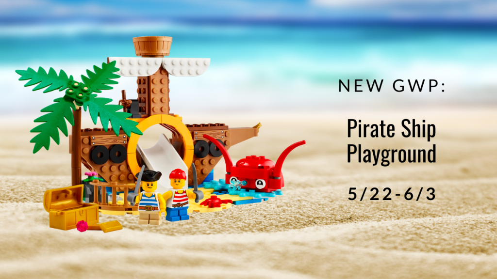 The Pirate Ship Playground #40589 is a 168-piece gift with purchase (GWP) available in North America between 5/22-6/3. The threshold for this sought-after set is a reasonable $100 spend.
