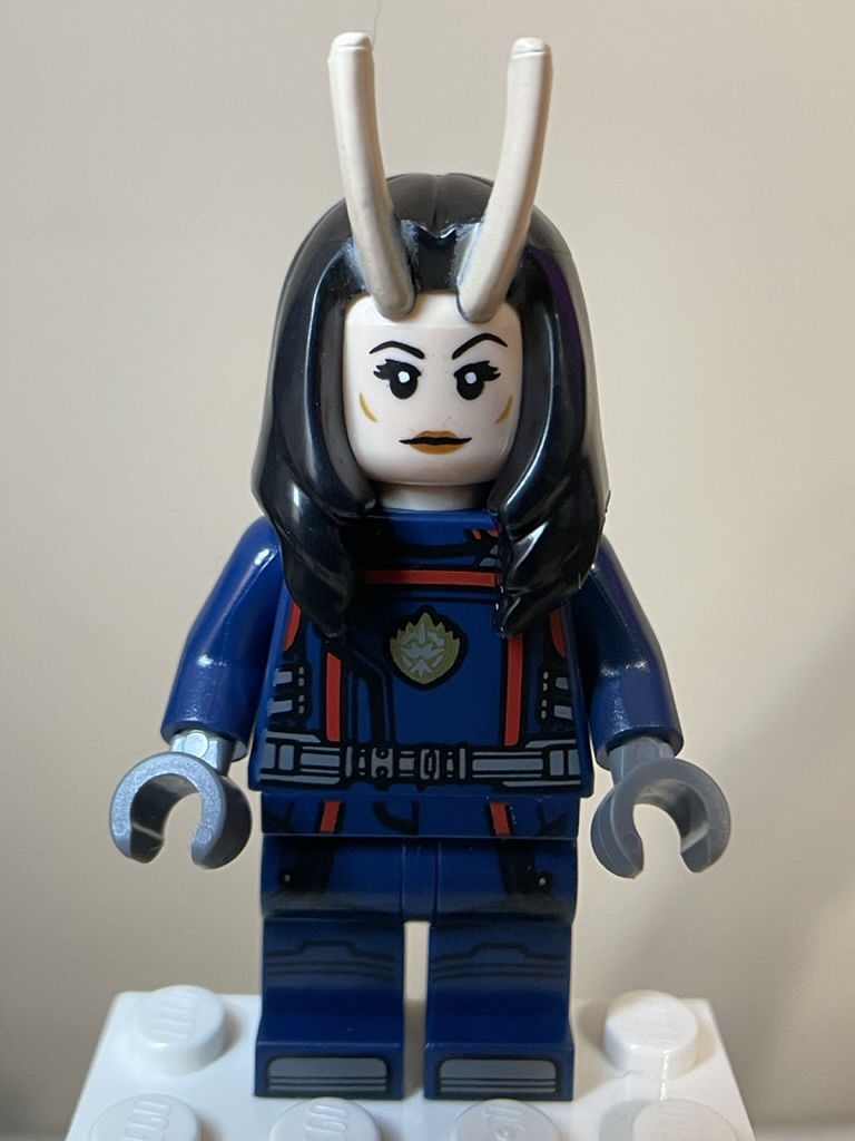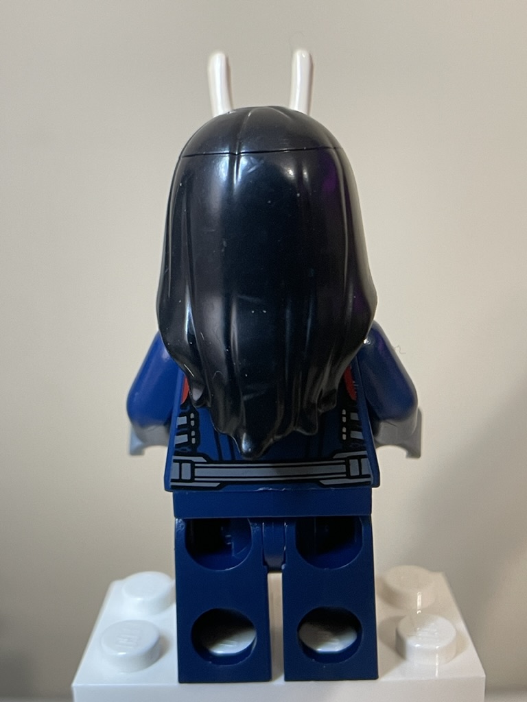 Star-Lord has a hairpiece that matches the character and comes with a couple of his trademark blasters. His head has an alternate face so we can set Peter as a happy chap or a grumpy fellow. He is the only non-exclusive minifigure, as he also appears in the Guardians’ Headquarters set. Mantis’s headpiece is a single mold and recreates the character ideally in Lego form.
