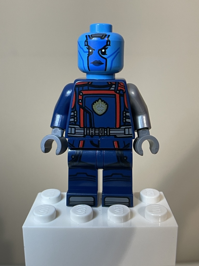 Nebula and Drax have distinctive headpieces, and Nebula has her silver arm.