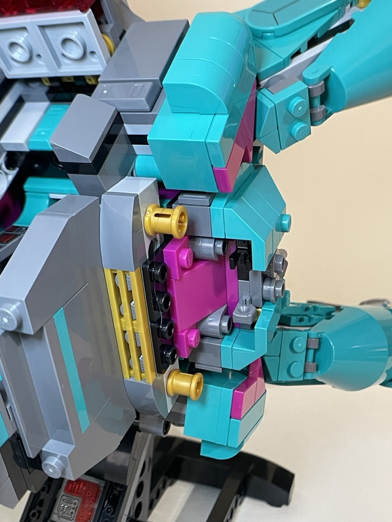 It’s appropriate to comment on the color of the spaceship first. Lego has done a stellar job of transferring the ship of movies into the build. The turquoise and magenta are striking, yet not over the top due to the dark grey elements. It’s fantastic to have something this vibrant on the shelves.
