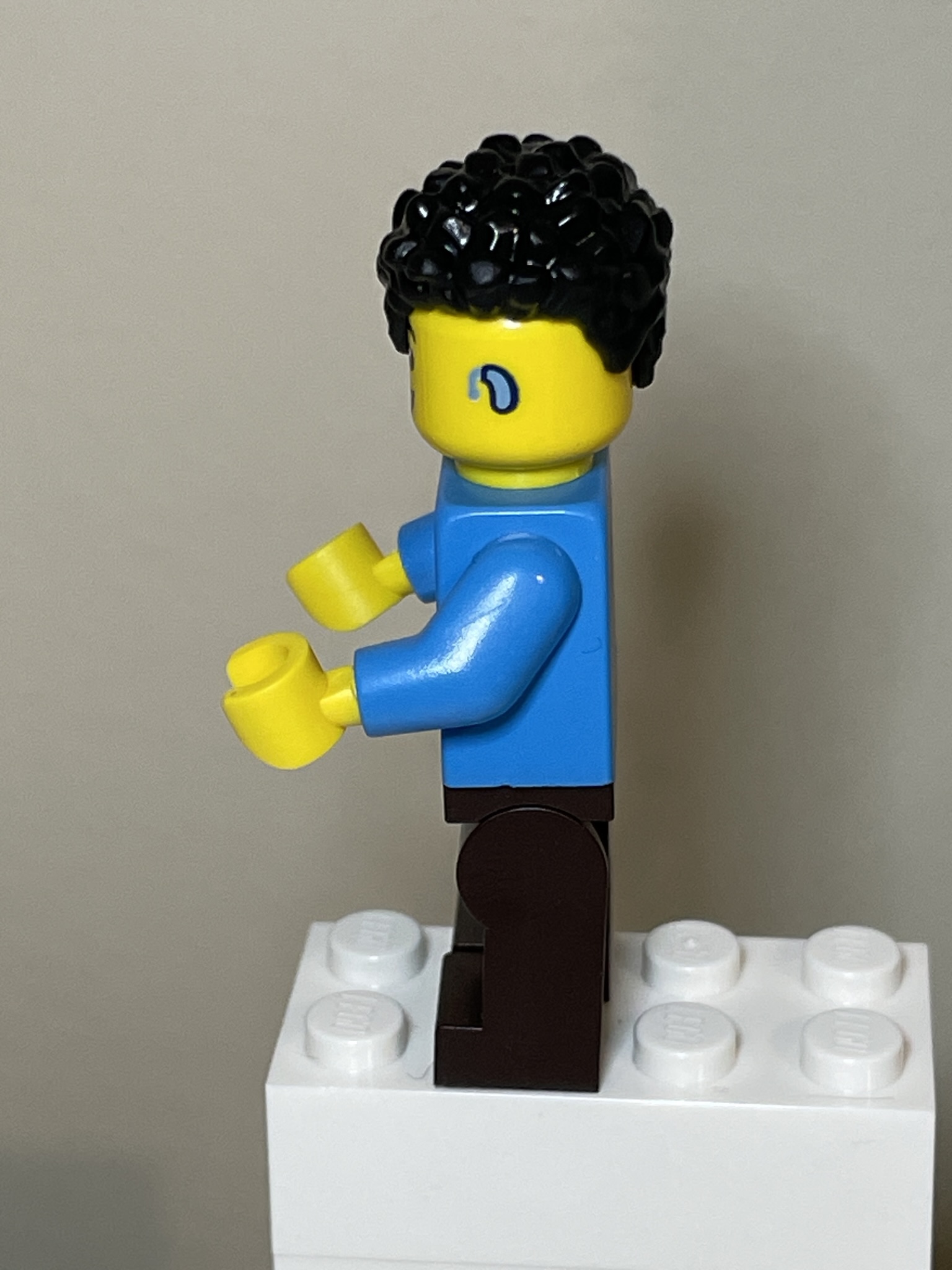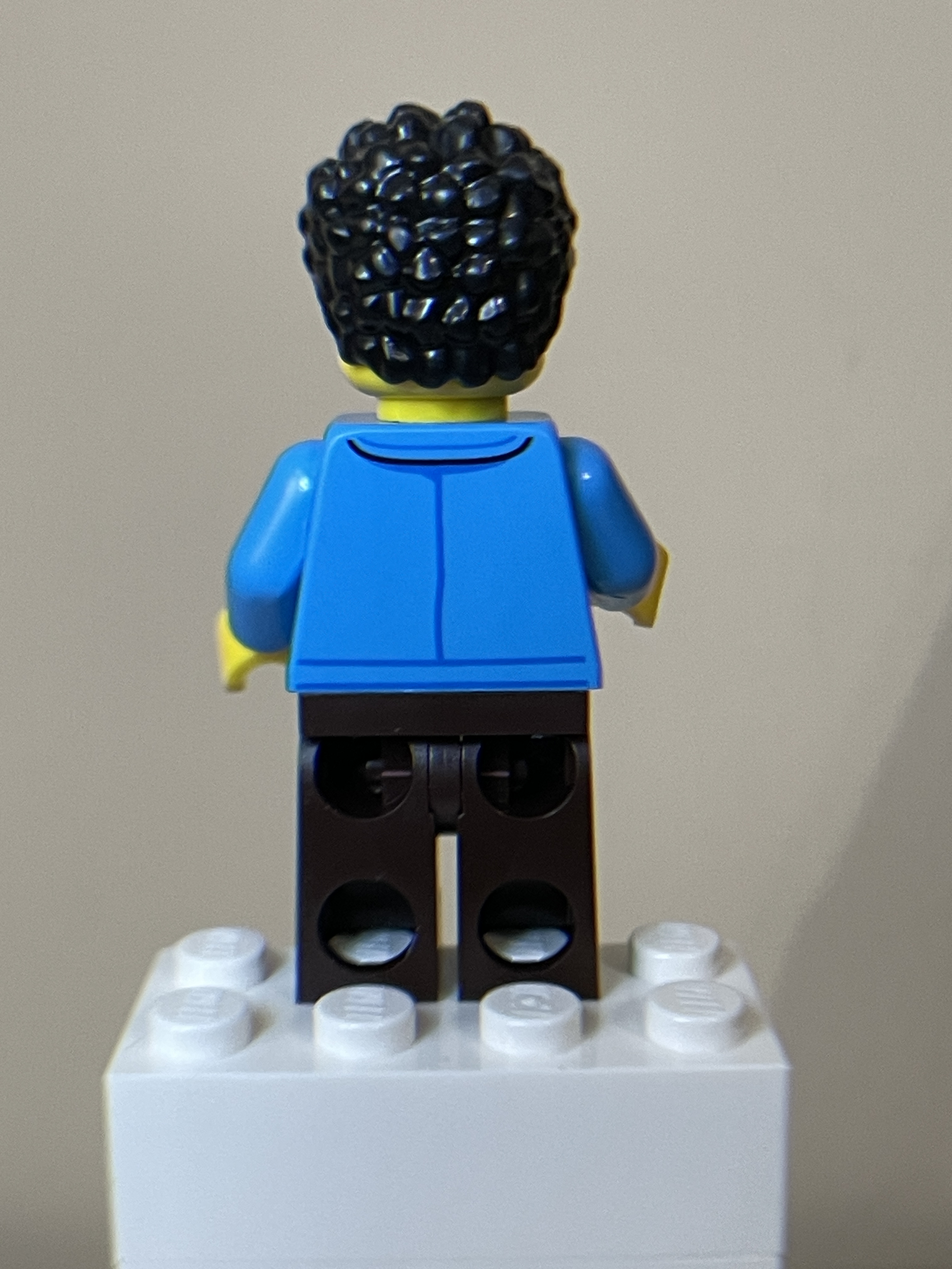 The dad has the most exciting torso print, with a space pilot-themed jacket over a back t-shirt. I can envisage many AFOLs using this torso in space MOCs. He also has the most interesting headpiece, as he has the hearing aid we first saw in the Jazz Club when it launched in January.