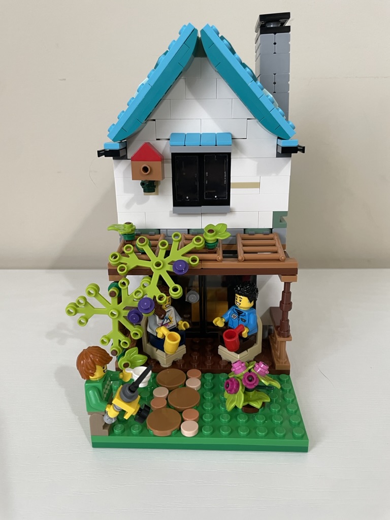 I was attracted to the versatility, color scheme, and the parts included in the set. Despite being small, it would be a lovely house for my city, either as the start of a residential area or to go next to the tree house and the A-frame cabin when built in the lake house configuration. The reasonable price point was also attractive – it’s nice to be enthusiastic about a reasonably priced set ($60), as so many items on my Lego shortlist are at least $200. Together, these factors mean the Cozy House is an excellent foundation for making larger structures and maybe my first MOC.